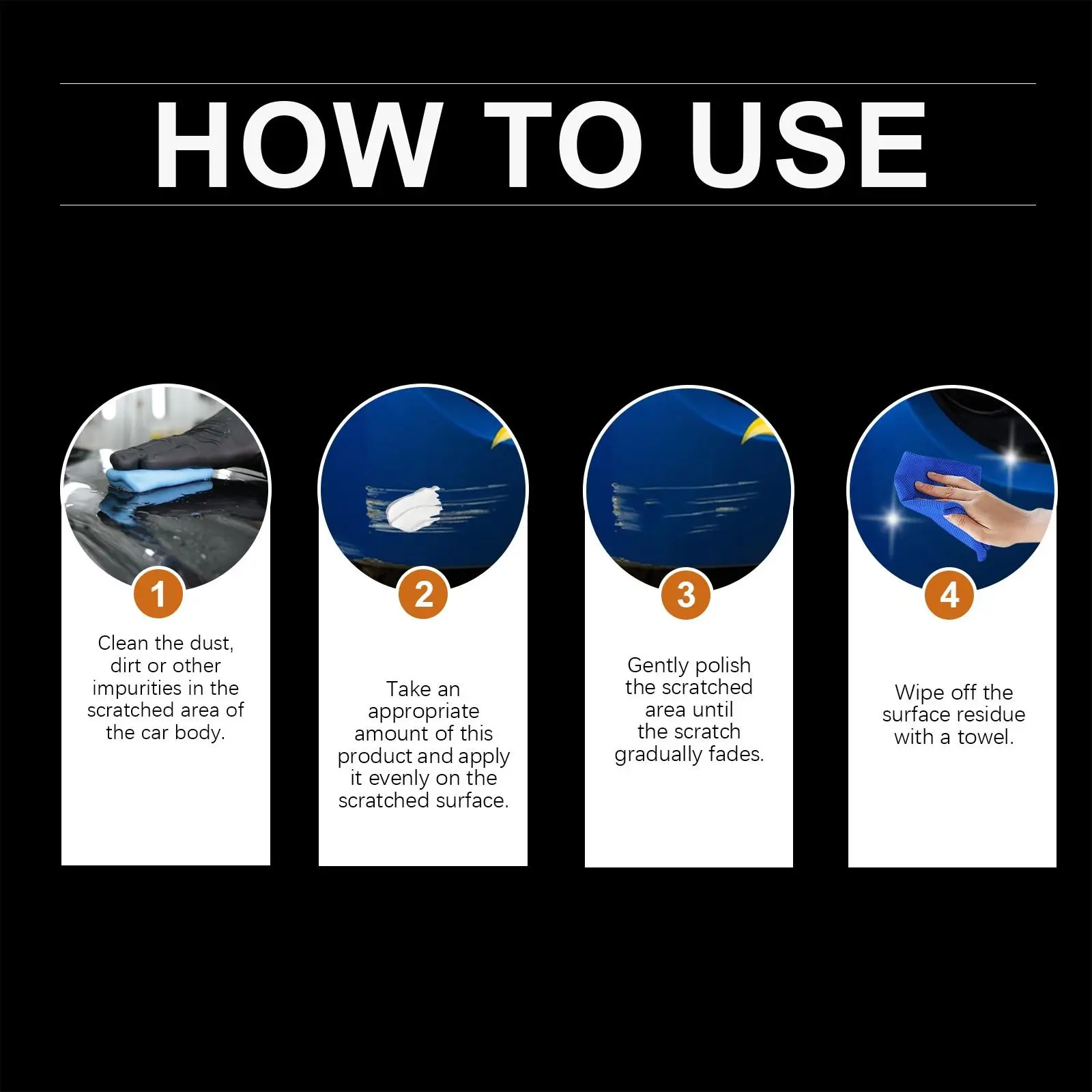 Our automotive scratch repair paste contains abrasives, surfactants and fillers. It matches any paint color perfectly. Its use is very simple: first evenly apply to the scratch, and then wipe with a cloth or towel. It can repair scratches, scratches and swirls on the car pain Please kindly note:🚚 Fast ShippingThis product ships from our U.S. warehouse via UPS (FedEx as backup). We aim to deliver your order quickly and reliably. 📦 No Return AcceptedThis is a single-use consumable product. Once opened and applied, it cannot be returned, reused, or restocked. Therefore, we do not accept returns under any circumstances. 🔍 Order CarefullyPlease read the product description thoroughly before purchase. Make sure it fits your intended use. We recommend placing orders cautiously. 💰 Promotional OfferThis product is currently on promotion at near cost price, with special deals for bulk purchases. Please check the promotion details on the listing page to save more.