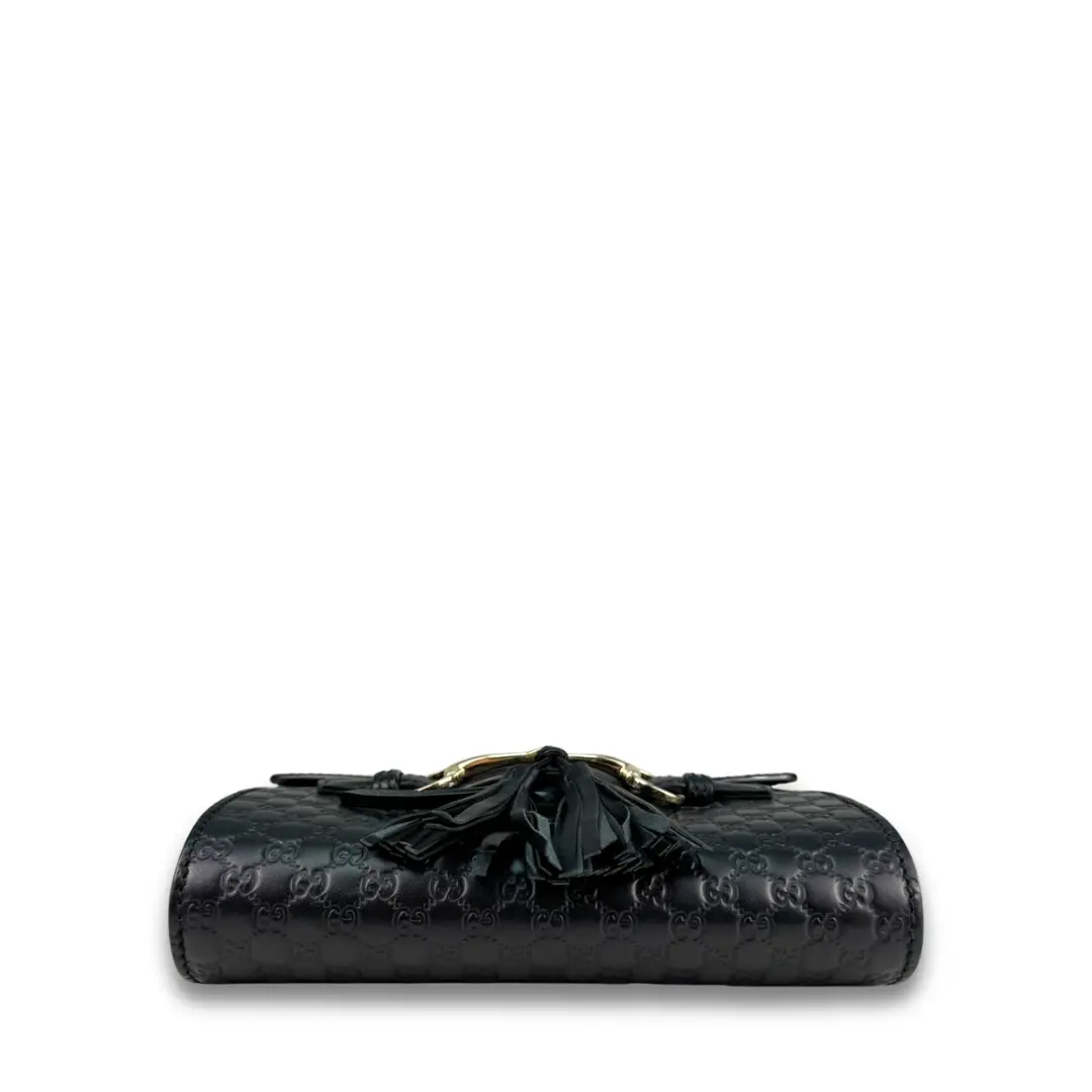 Pre-owned GUCCI Leather Shoulder Bags Black Guccissima Mini Emily Flap Bag