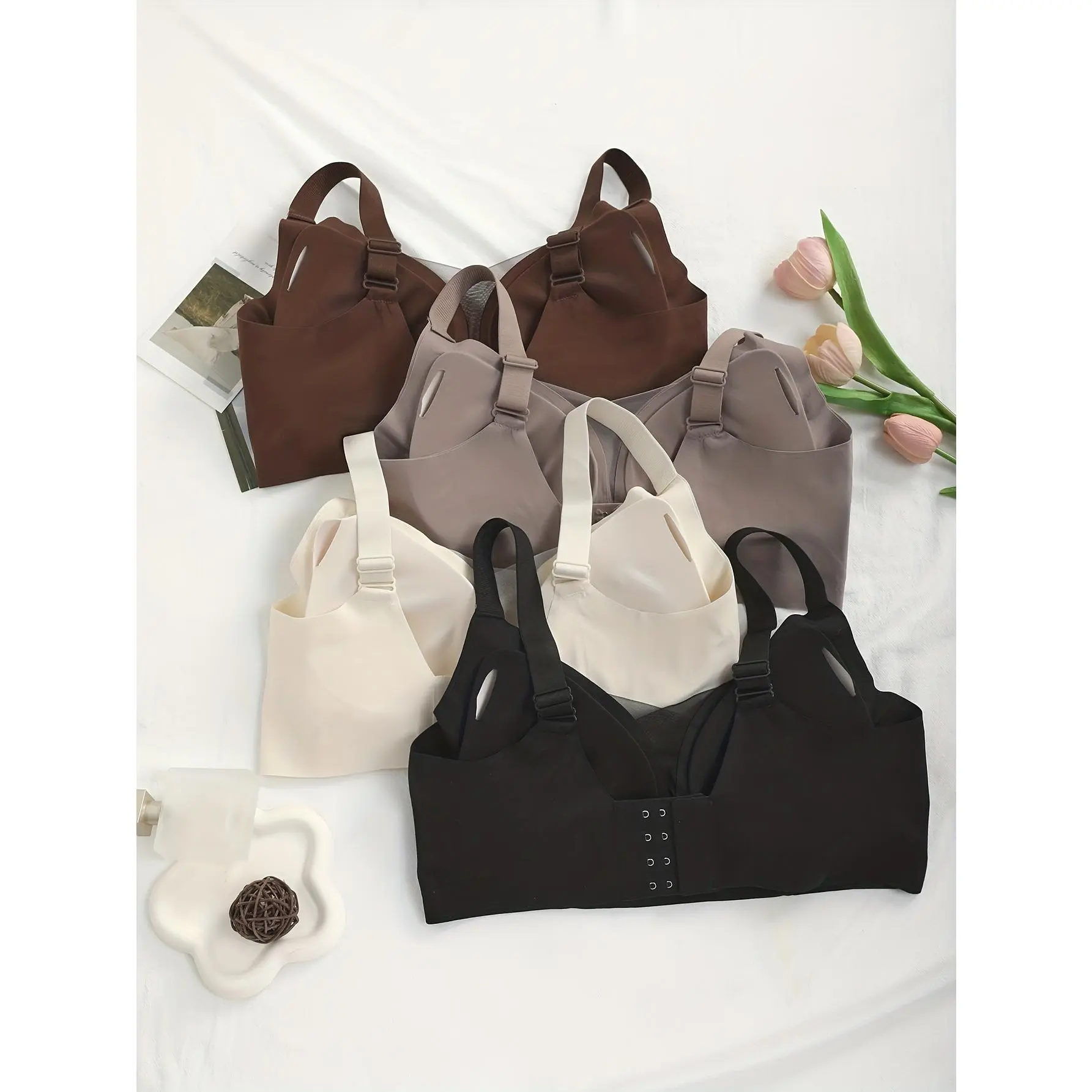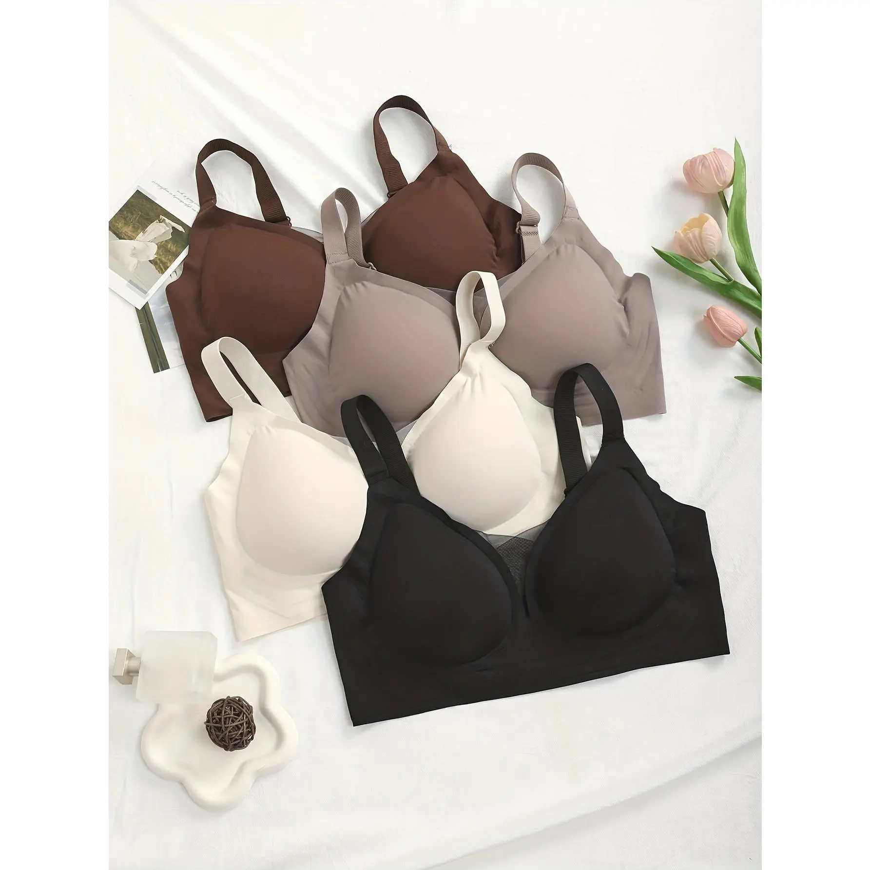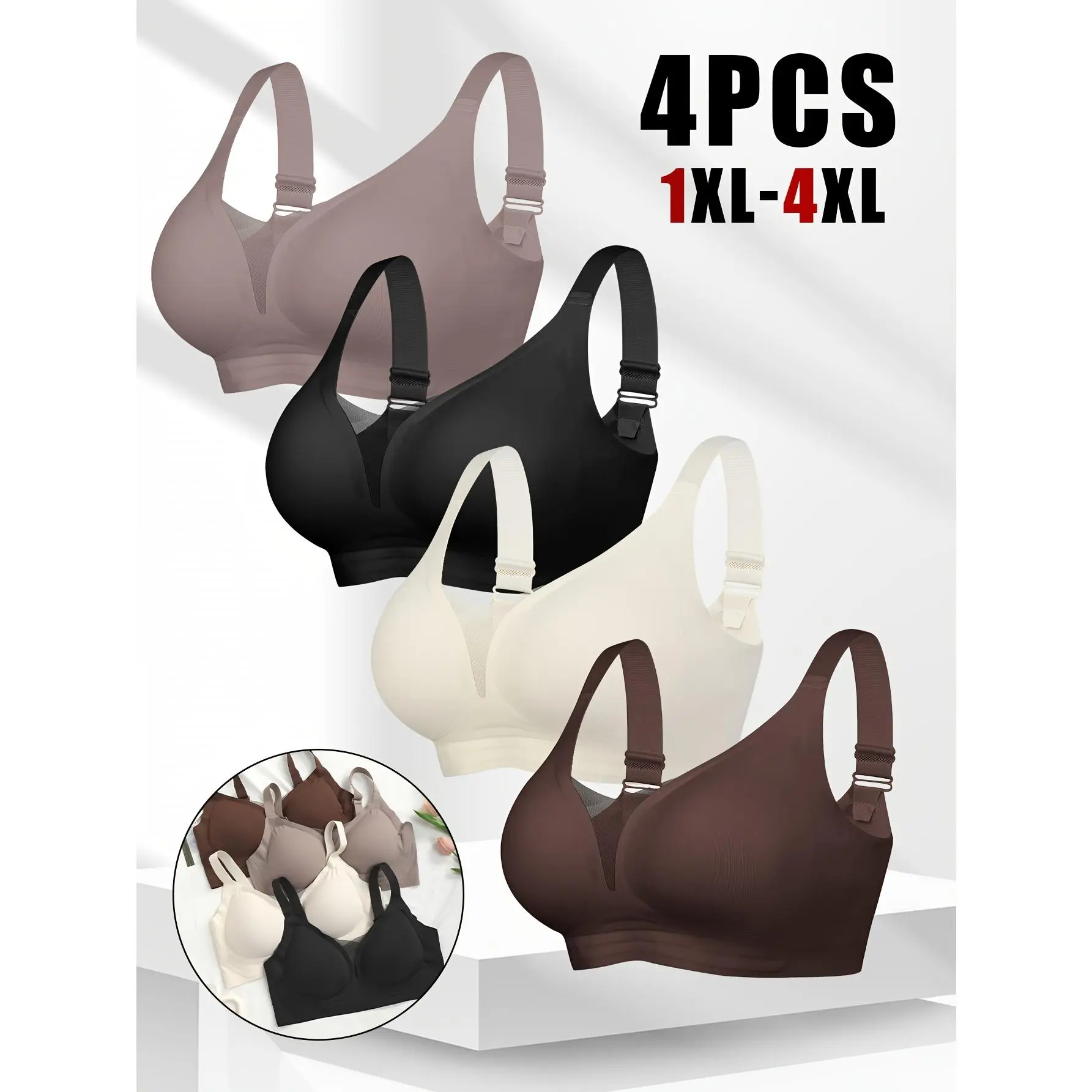 Plus Size 4-Pack Wireless Bras, Adjustable Shoulder Straps, Fit Chest Curve, Soft & Skin-Friendly Fabric, Lace Breathable Bras for Yoga, Running & Fitness