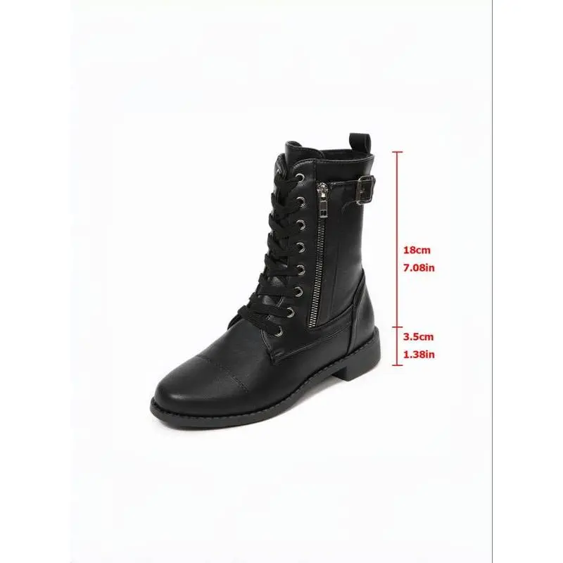Women's classic plush combat boots, warm midsole boots, zip up motorcycle boots, comfortable winter walking shoes, women's short boots, women's work boots