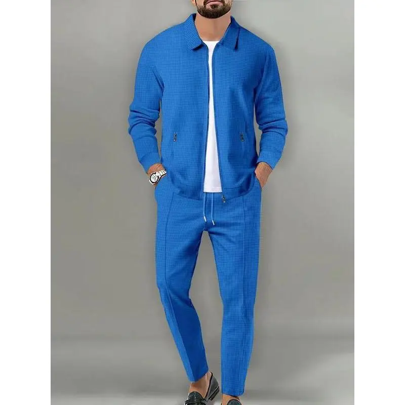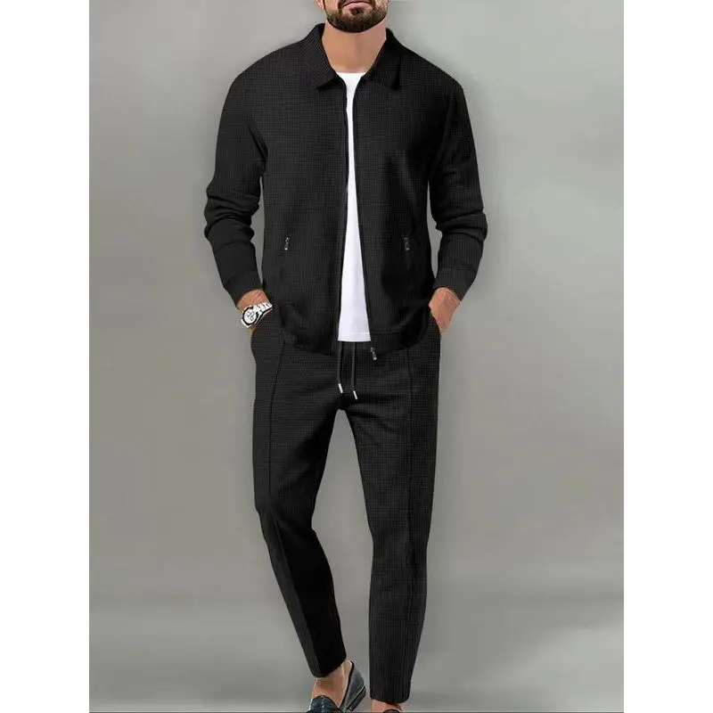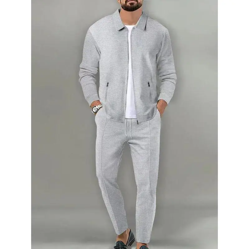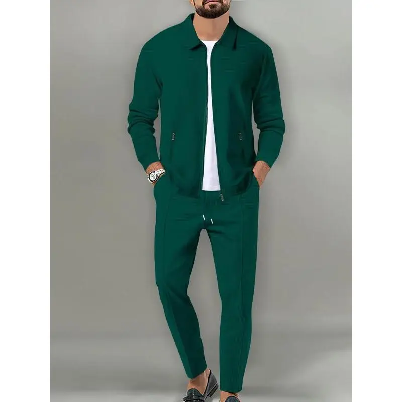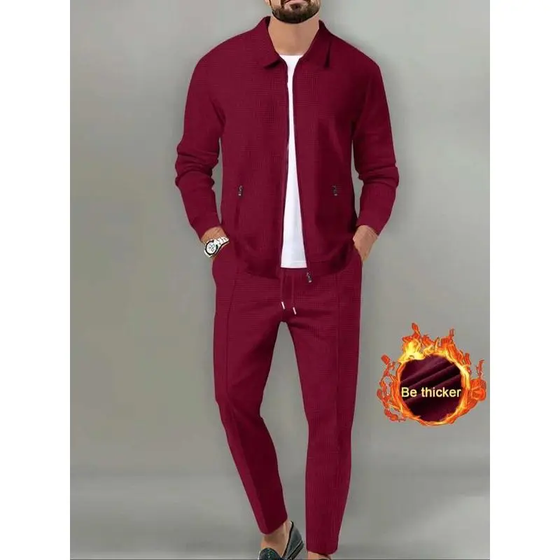 Sporty Two-Piece Set Men's Plain Zip Up Jacket & Drawstring Waist Pants Tracksuit Set, Sports Long Sleeve Collared Outerwear