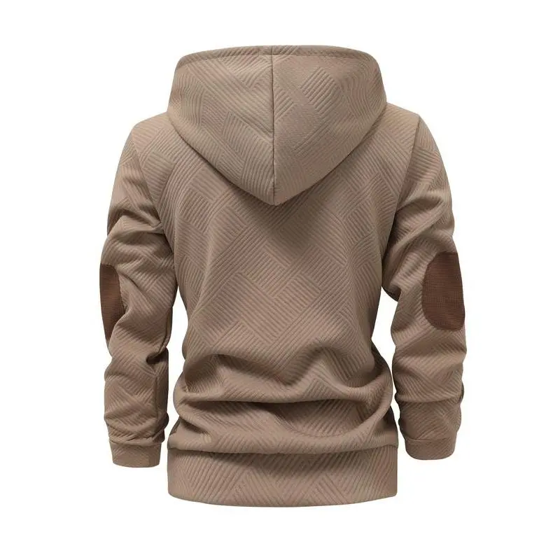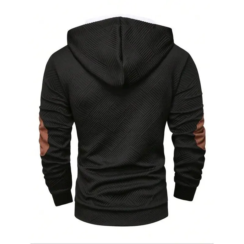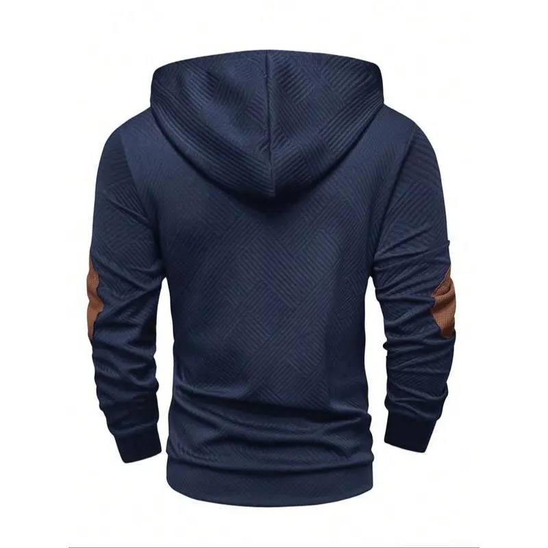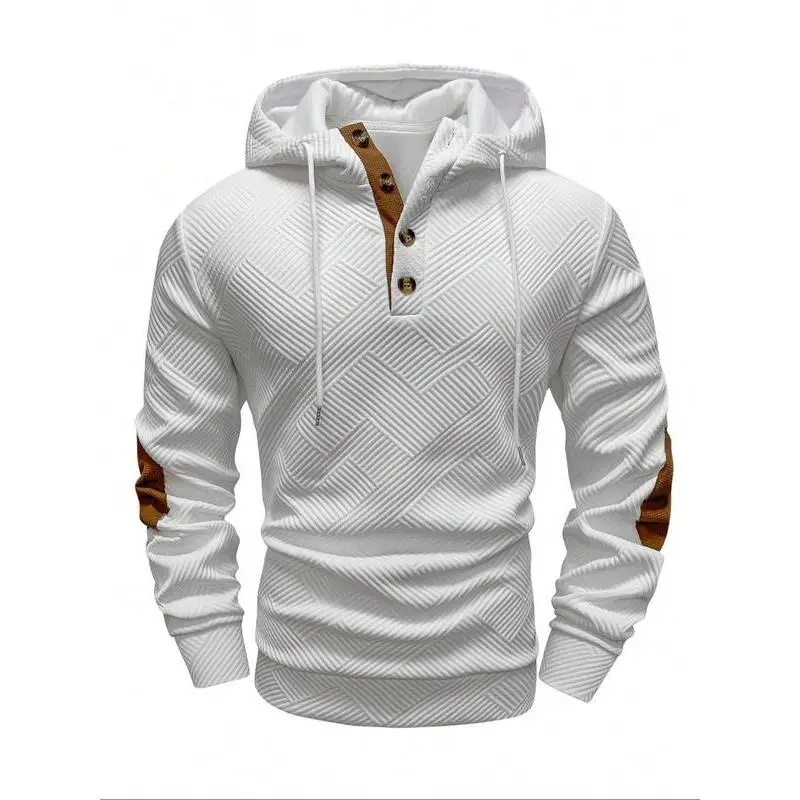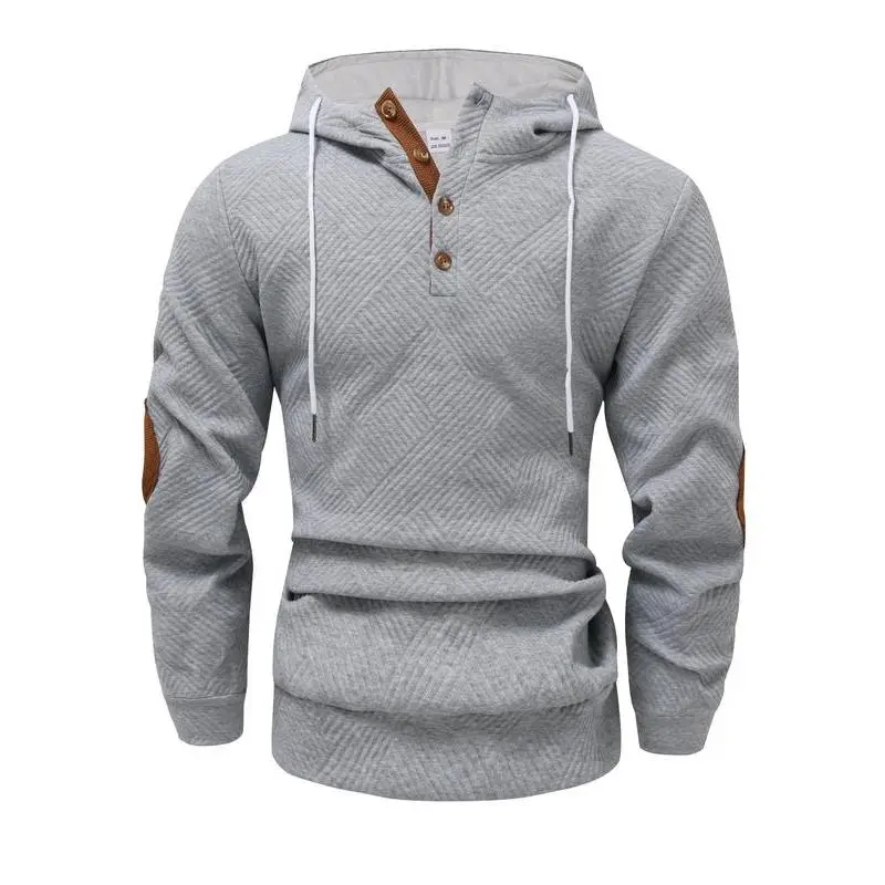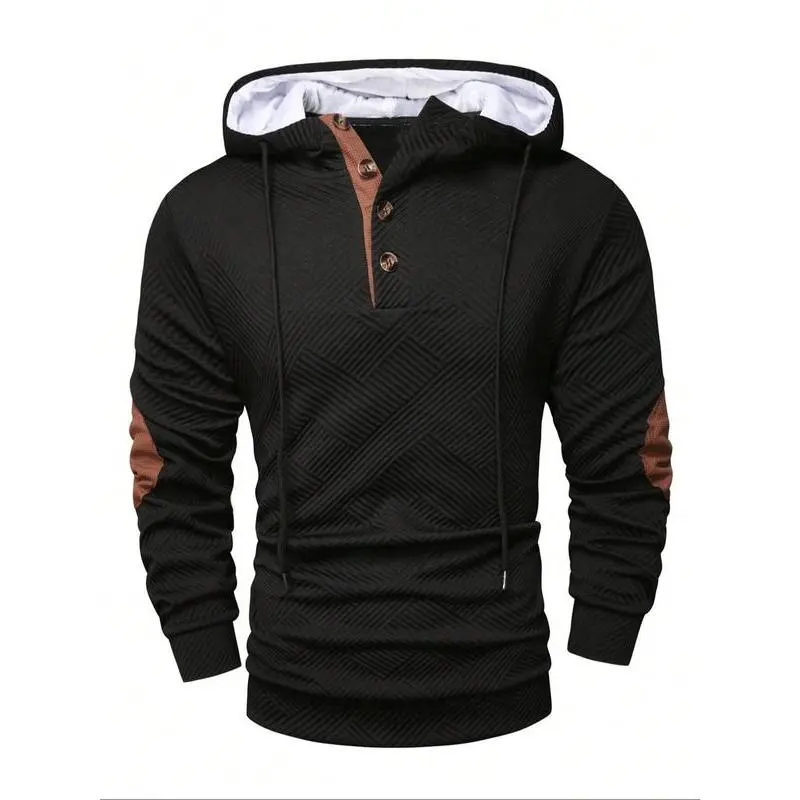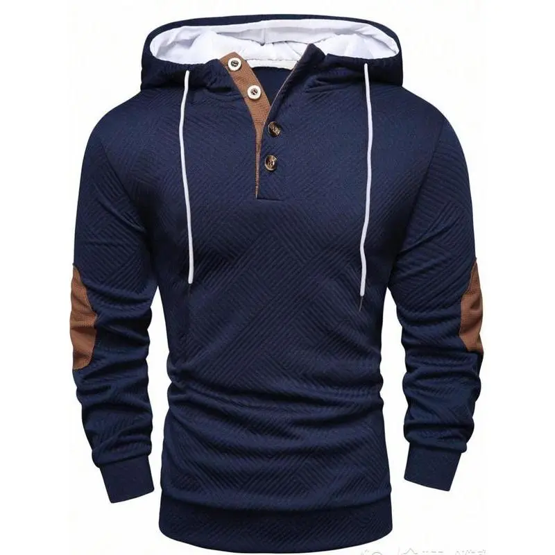 Men'scasualsportspulloverhoodiewithdrawstrings,patchdesignonthesleeveshaftwithbuttoncollar,comfortablefabric,regularversion,suitableformensdailywearinautumnandwinter.