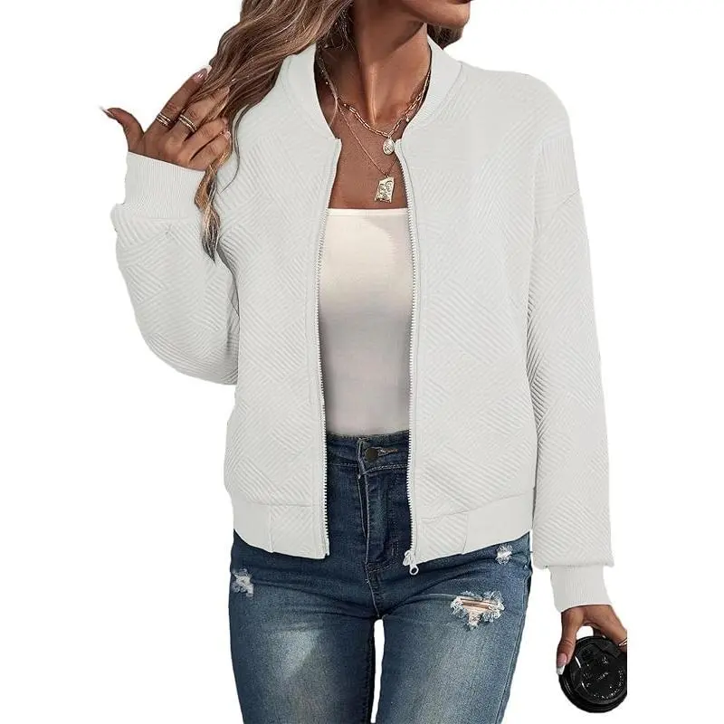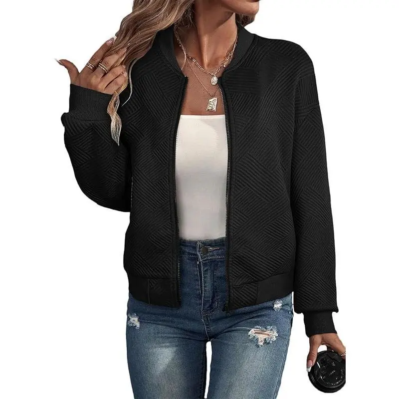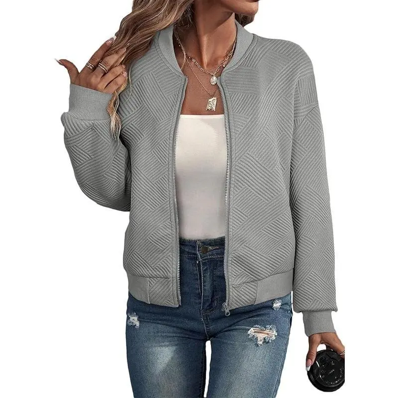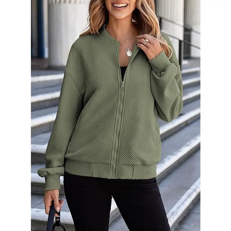 WomensBomberJacketCoatCasualStandCollarZipUpLightweightFallFashionJacketsOutfitswithPocketsBasicLongSleeve