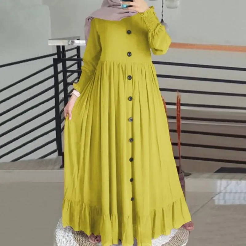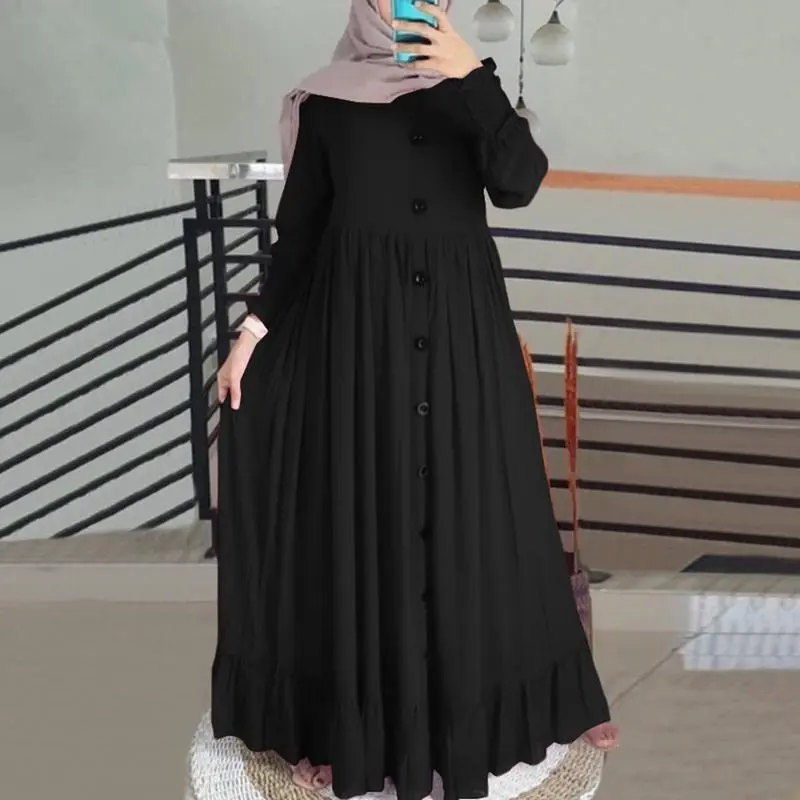 WomenMuslimDubaiAbayaTurkeyHijabDressTurkeyAutumnLongSleeveButtonsDownSundressIslamClothingAbayasMaxiVestidos