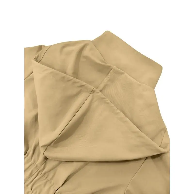 ��Tailored Fit��: The fitted silhouette of this jacket enhances your shape while providing a modern look for fall and winter. ��Hooded Utility��: Featuring a practical drawstring hood, this outerwear piece offers added protection against colder weather conditions. ��Functional Pockets��: Equipped with zipper pockets, this jacket allows secure storage for essentials while maintaining a clean and sleek appearance. ��Thick Fabric��: Crafted from thick, woven fabric that provides warmth and durability, making it suitable for colder seasons. ��Solid Color��: Presented in a plain khaki color, this jacket offers a neutral aesthetic that easily complements a variety of outfits.
