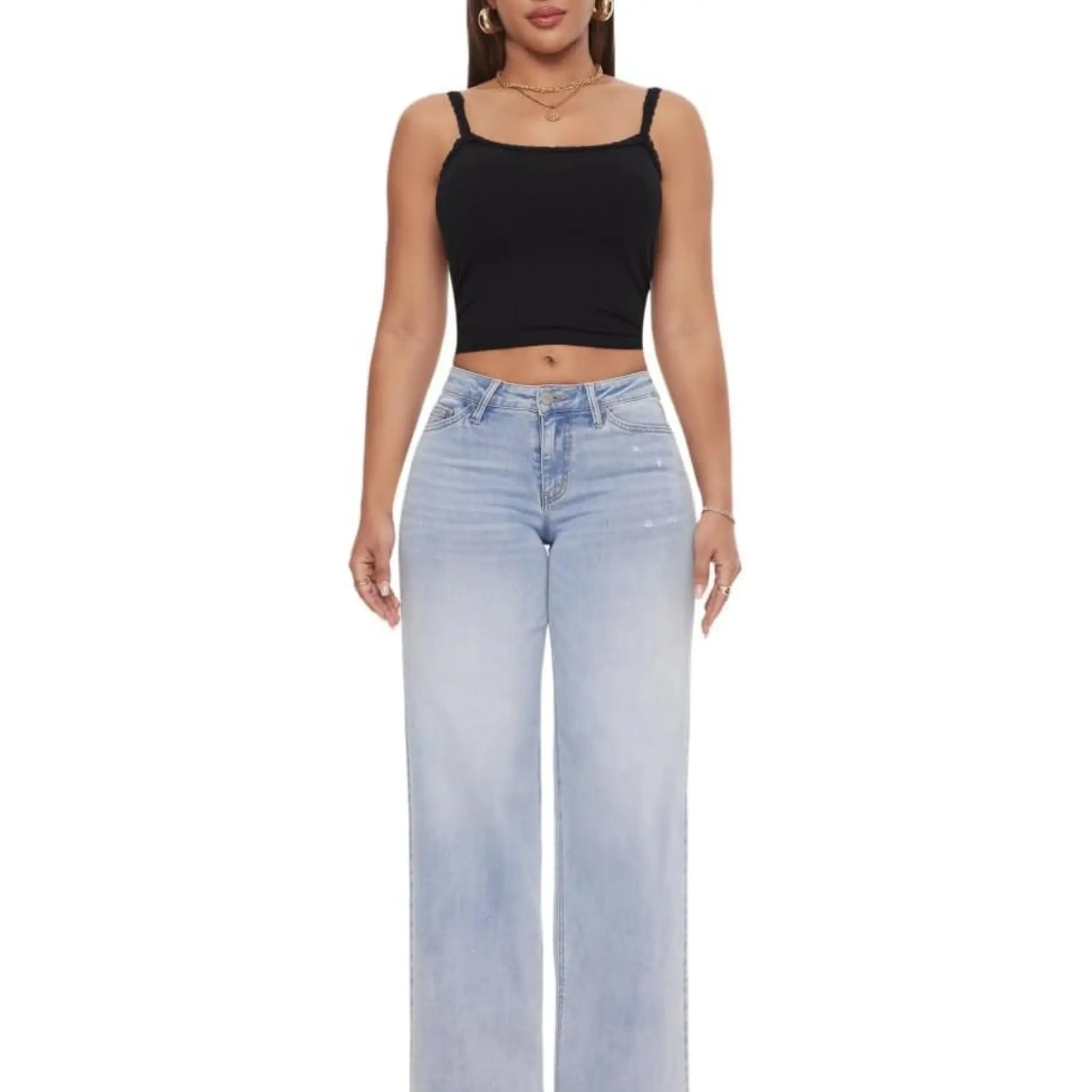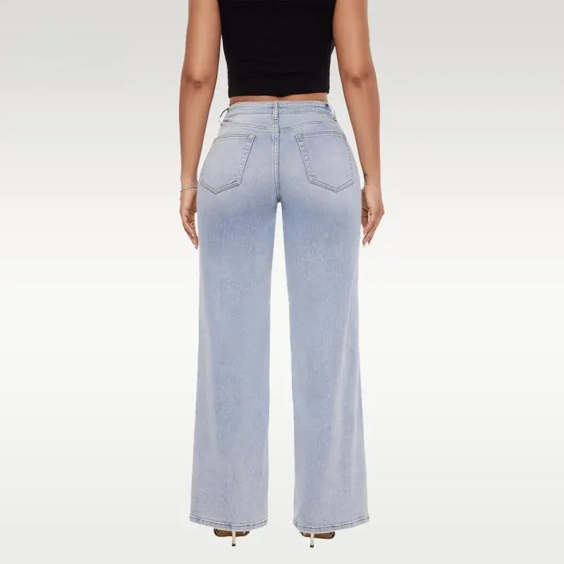 Magic ONESO Mid-low Rise Baggy Jeans Stretchy Wide Leg for Women Distressed Pants Womenswear Bottom 8001 Lady Basic Minimalist Comfortable Denim Tummy Control Curve Hugging Plus Size Regular Size BBL Spring Fashion Daily Outfits
