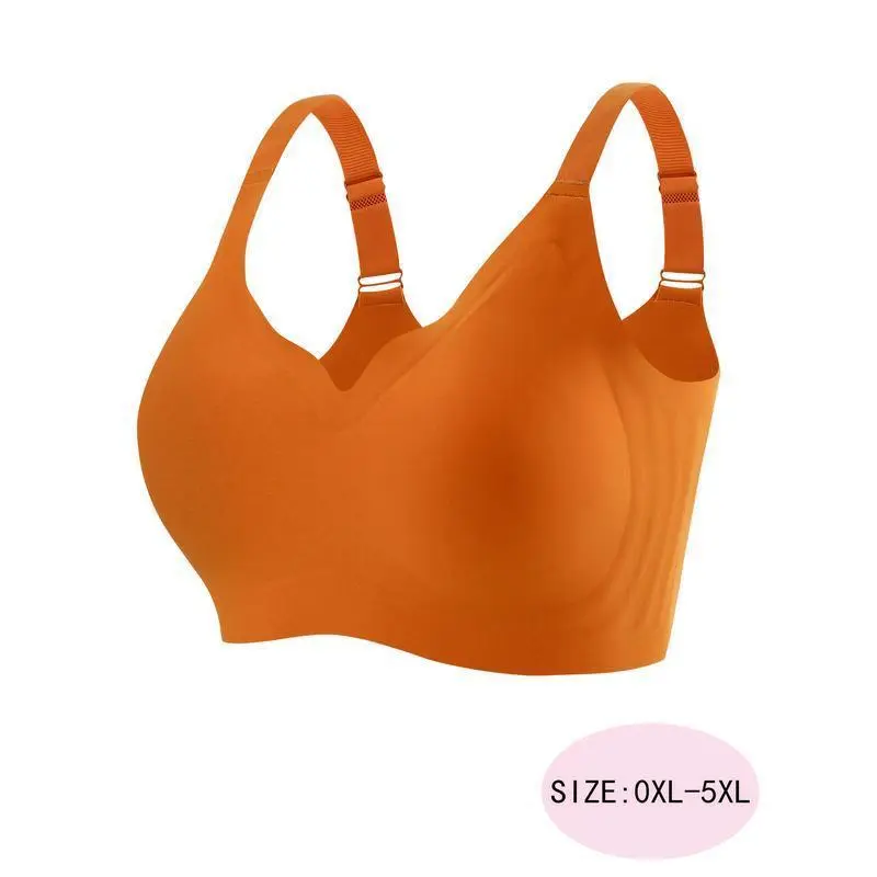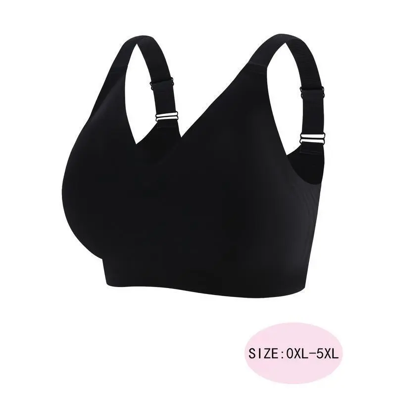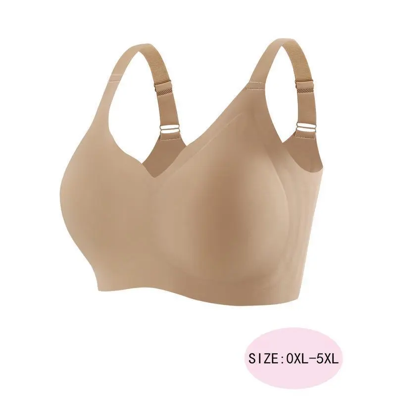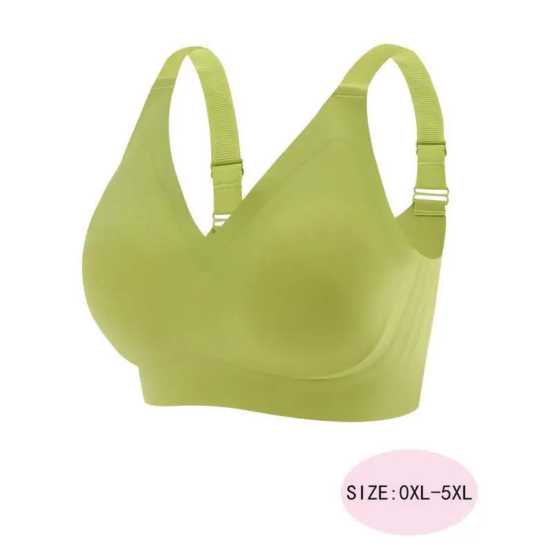 Plus Size Seamless Jelly Bra with Wide Straps & Removable Pads - No Underwire,Smooth Texture Minimalist Womenswear push bra bras women strapless bra Green Basic Beige Black
