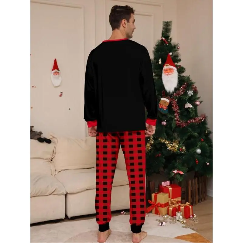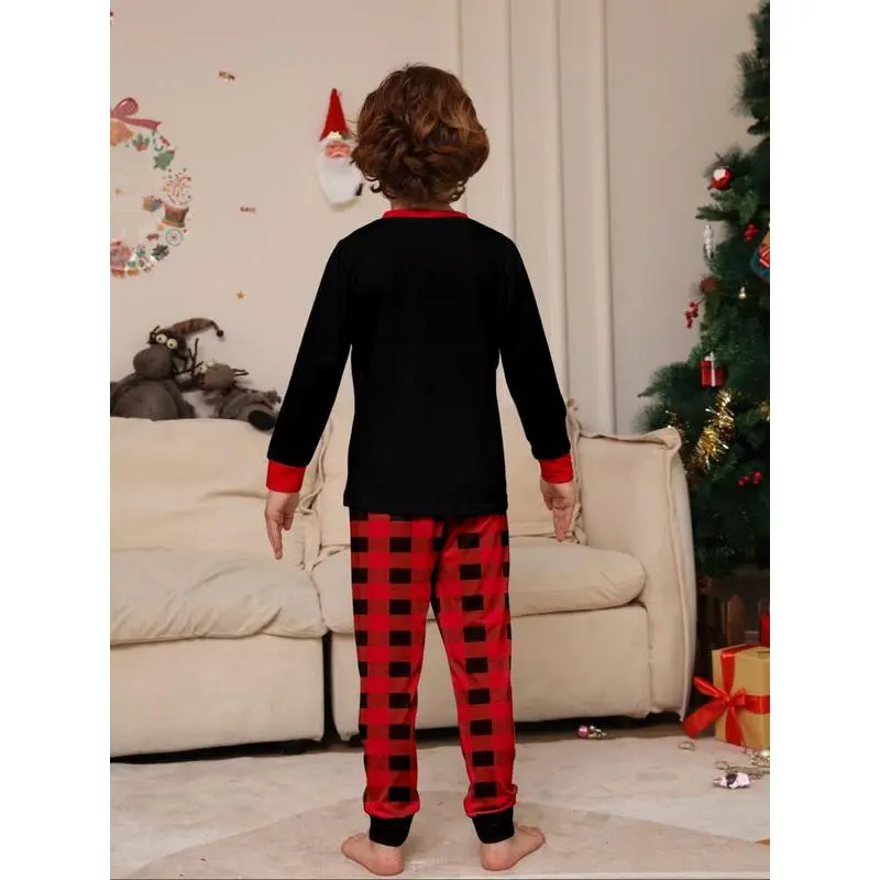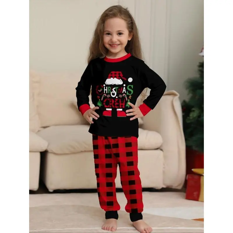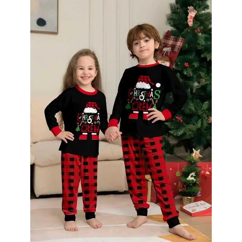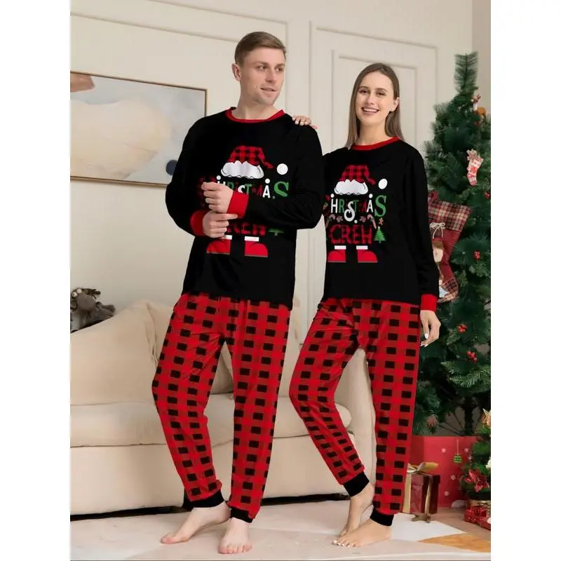 ChristmasFamilyMatchingFour-PieceSet,CartoonHatLetterPrintTopStripedPants,CasualFittedHomeSleepwear
