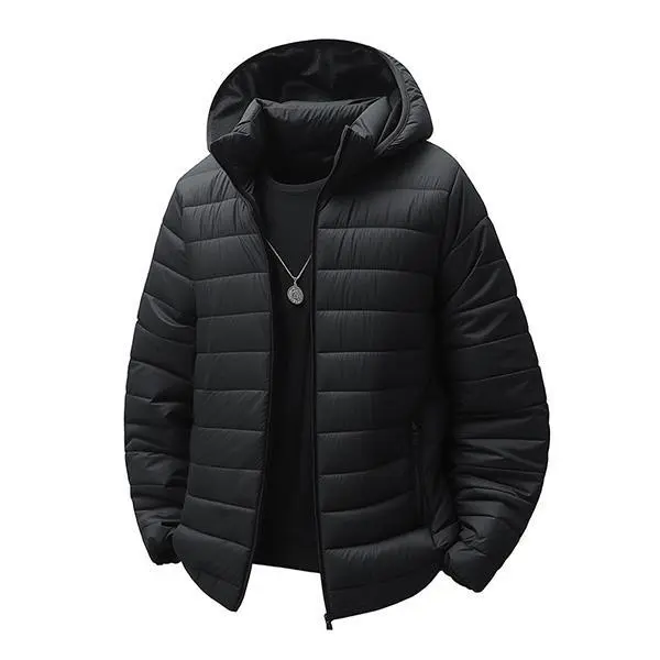 Men's Casual Black Down Jacket - Hooded, Comfortable & Trendy