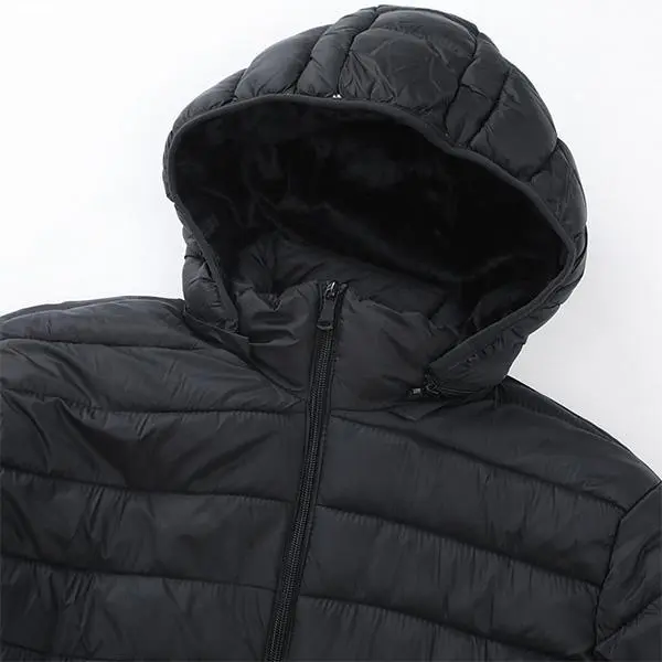 Comfort enhances your style This men's down jacket perfectly combines style and comfort. It features a stylish black design making it perfect for casual outings. The hood design adds an extra layer of protection against the elements. Stay stylish while being comfortable and fitted. This jacket will be your go-to piece for everyday wear. Embrace the season in a down jacket that marries function with fashion.