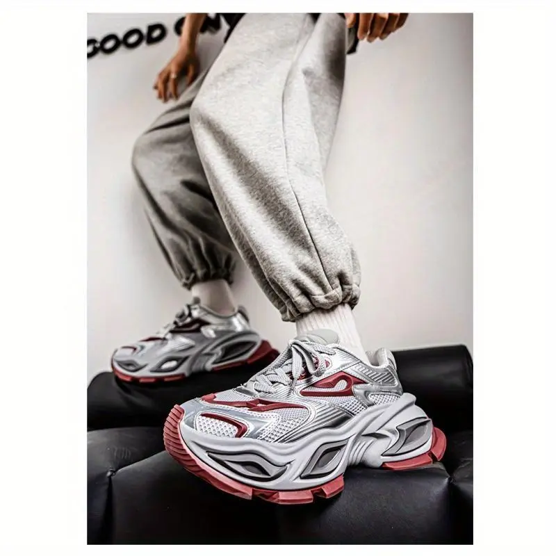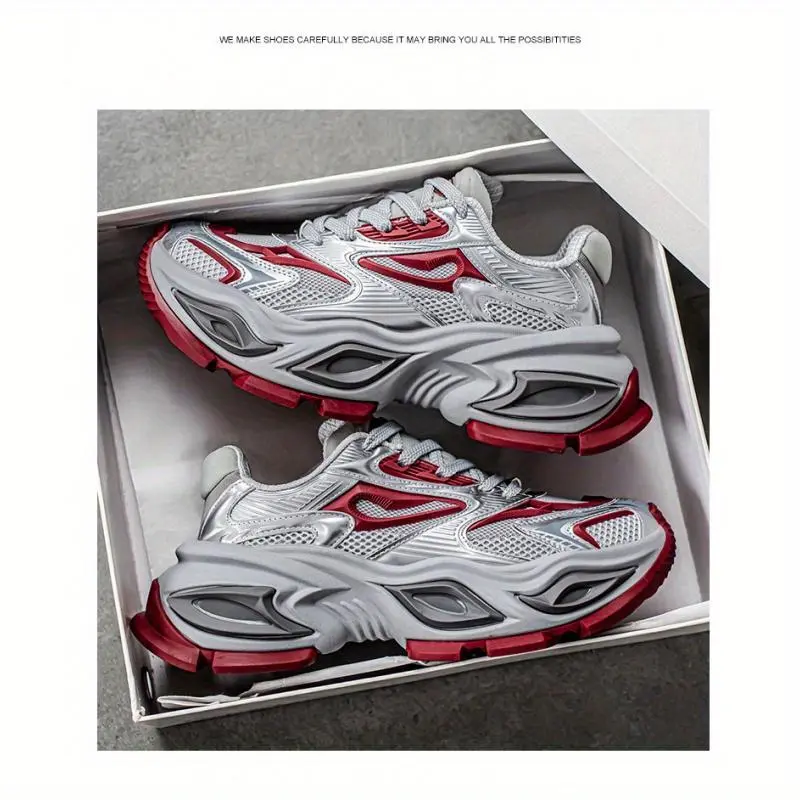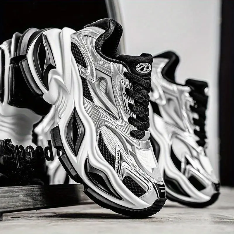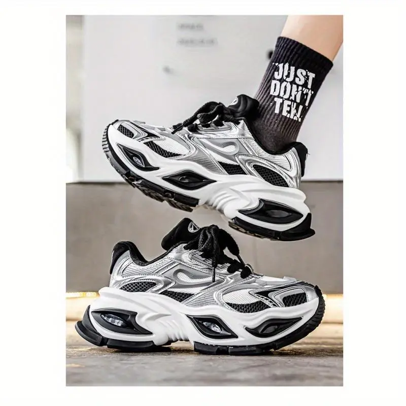 Trendy Retro Sneakers! ✨ White & Black Chunky Sole Athletic Shoes ✨ These stylish casual sneakers are perfect for men and women. The chunky sole adds a retro touch, making them ideal for sports and everyday wear. The upper is made of PU and mesh, ensuring comfort. The insole is EVA, and the sole is rubber. 🏃♂️ Style and Applicability These sneakers have a low-top design, suitable for males. The solid color pattern and lace closure type add to their sporty style. Item ID: TJ3940990. Origin: Guangdong, China. 🌍