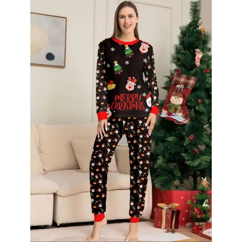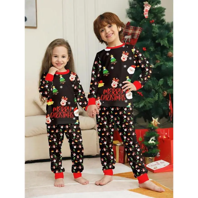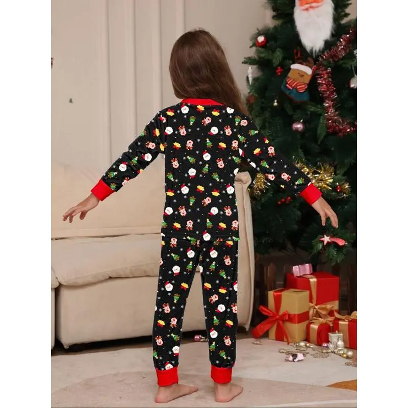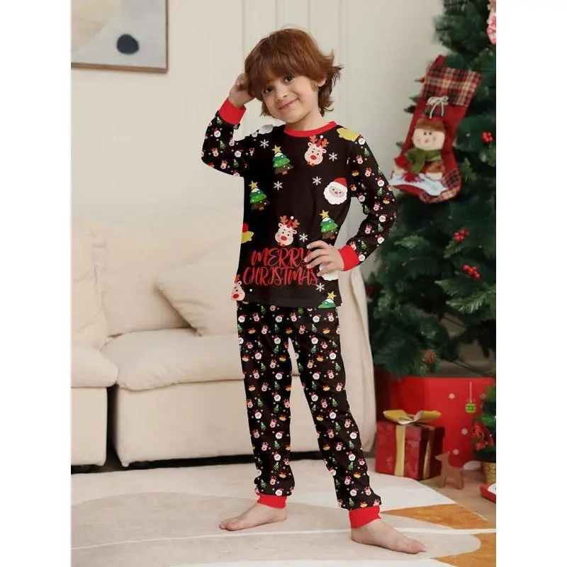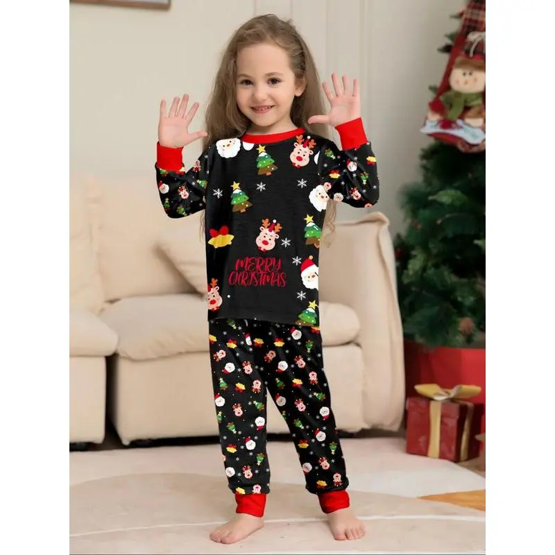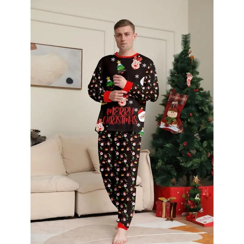 2PieceChristmasFamilyPajamaSet,CartoonDeerPrintTop&IrregularPants,CasualFittedSleepwearforMenWomenKids