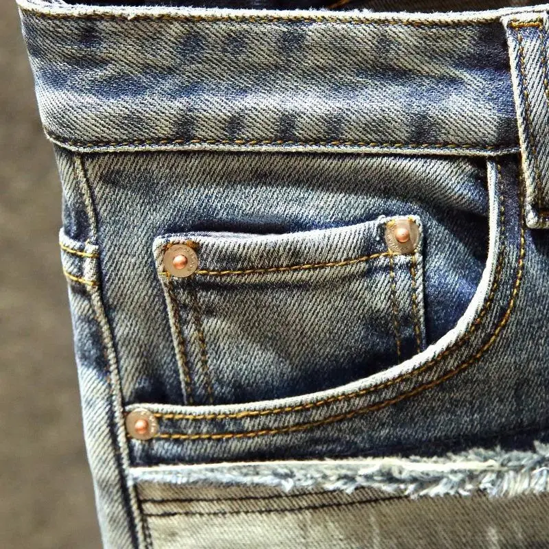 Men's jeans, long pants, denim pencil pants, simple splicing, straight leg pants, slim fit, casual, high waist, sleeve, pocket, button, winter