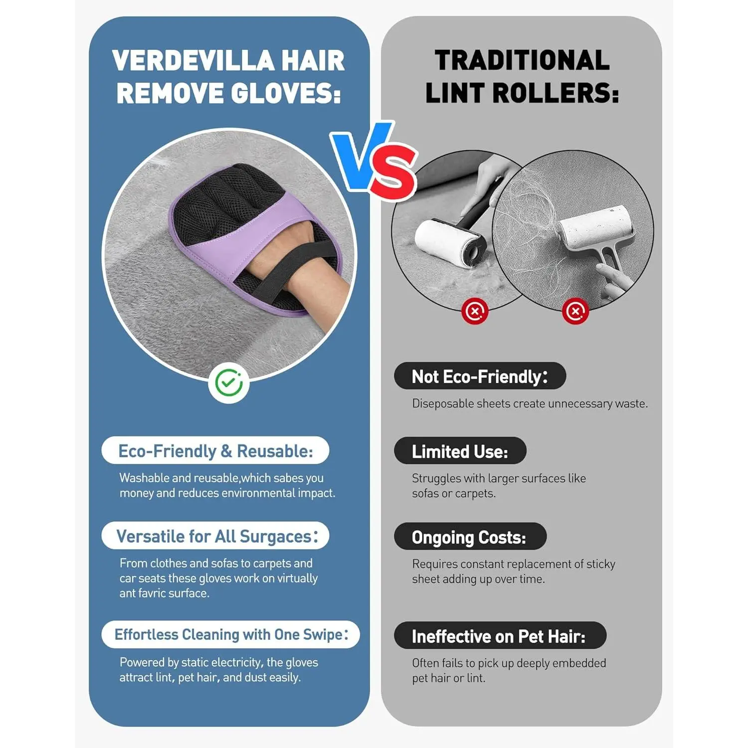 Magic Brush Glove Pet Hair - 2 Pack Electrostatic Grooming Removal Gloves for Dogs and Cats, The Magic Brush Pure Path Yomi Pet Grooming Needs, Fur Remover for Furniture, Clothes (Purple)