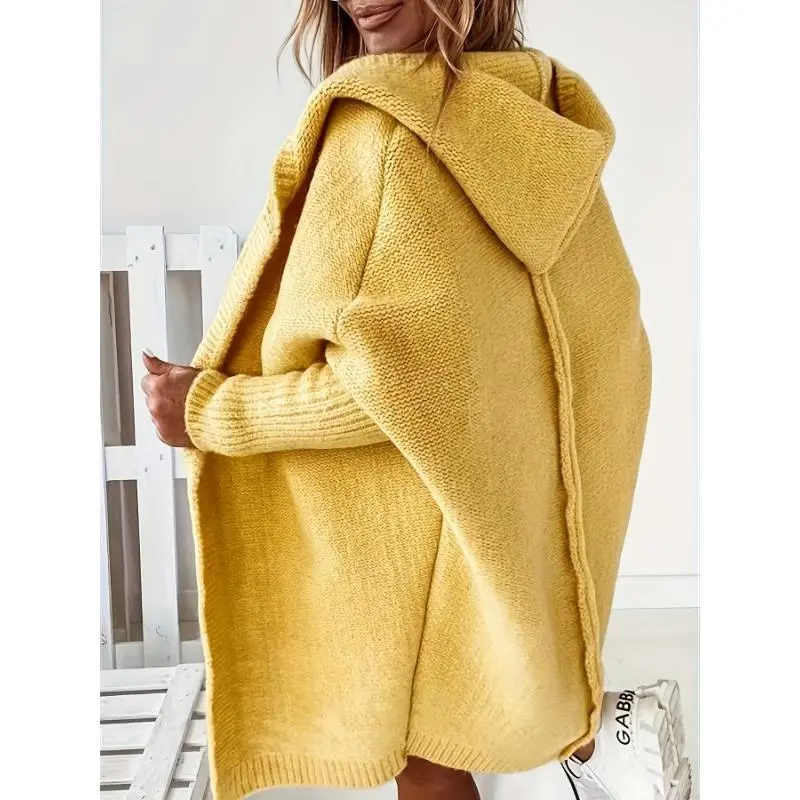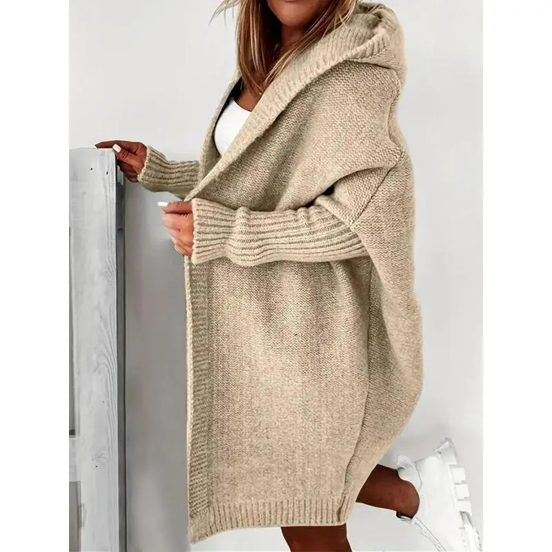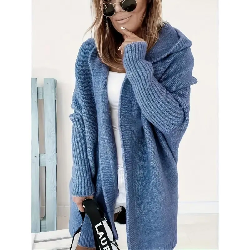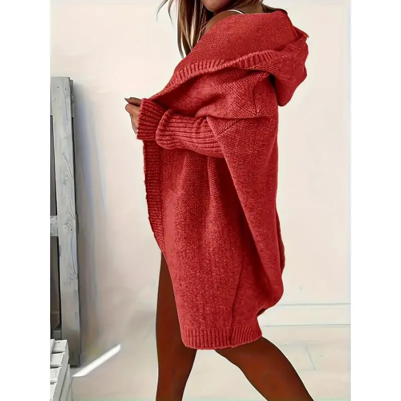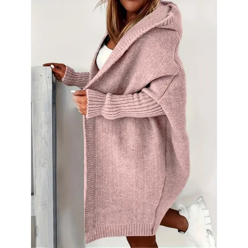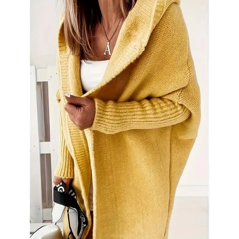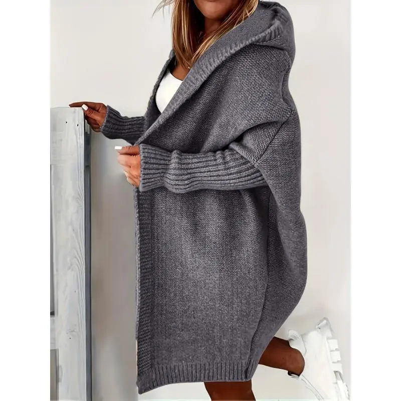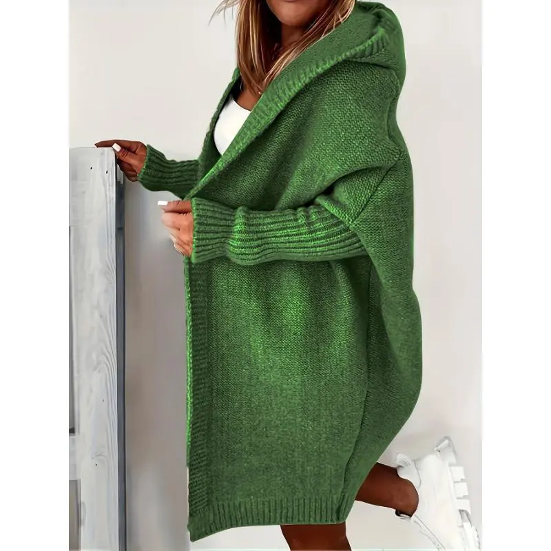 Plus Size Solid Color Hooded Cardigan, Casual Long Sleeve Knitted Cardigan, Women's Plus Size Clothing