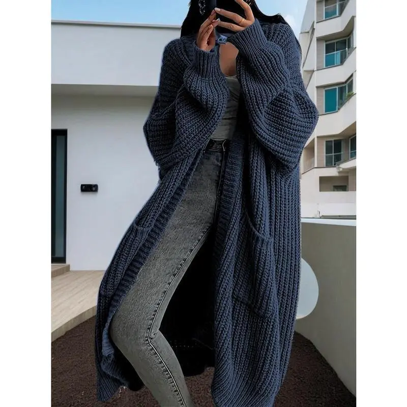 AutumnWinterWomen'sLooseLongSleeveKnittedCardiganWrapTopPlusSizeHeatherGreyforLazyWear