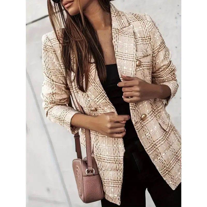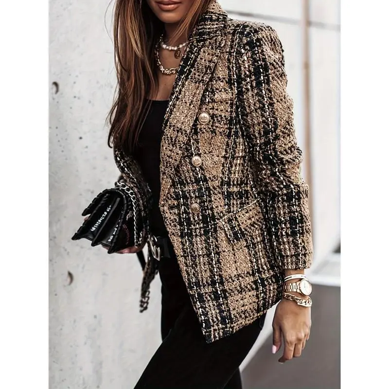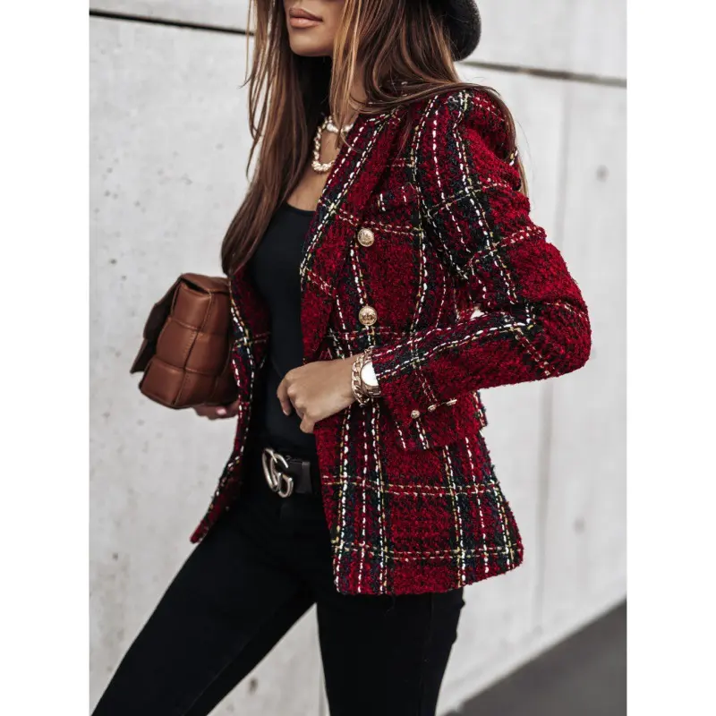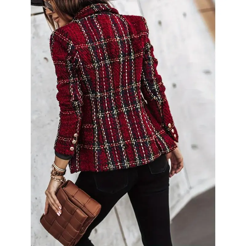 New Autumn and Winter Casual Two-tone Plaid Women's Business Commuting Christmas Holiday Jacket Set Coat Womenswear Suits