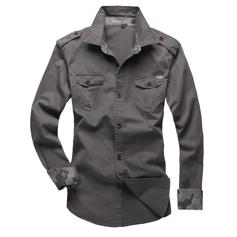 New Cotton Military Shirt with Epaulette Men Long Sleeve Breathable Casual Shirts Man Solid Shirt Slim Fit Male Shirts