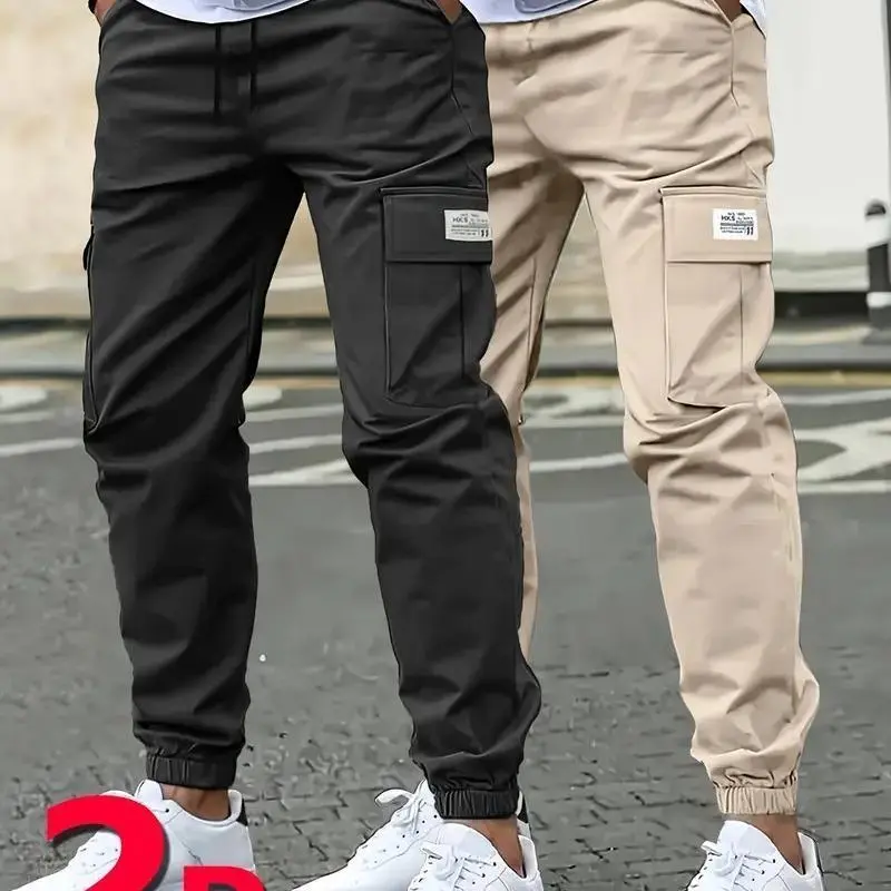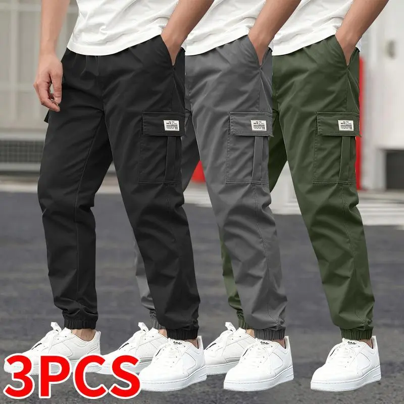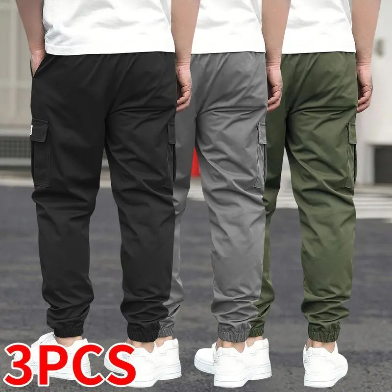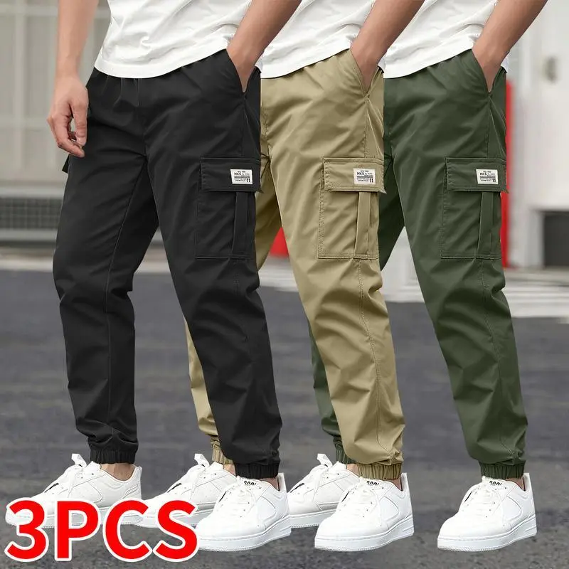 Pack of 3!Men's casual work pants, commuter work pants, made of non-stretch fabric, tapered leg with multiple pockets, regular fit, machine washable, suitable for various work environments.
