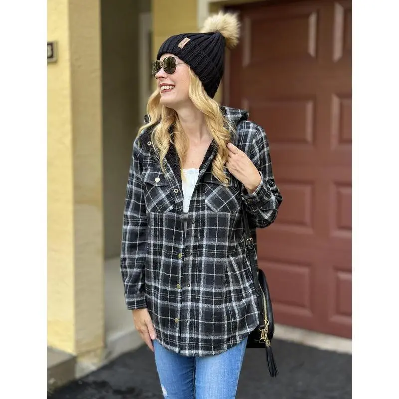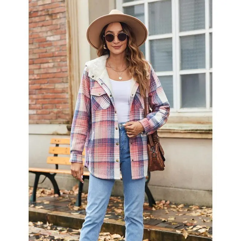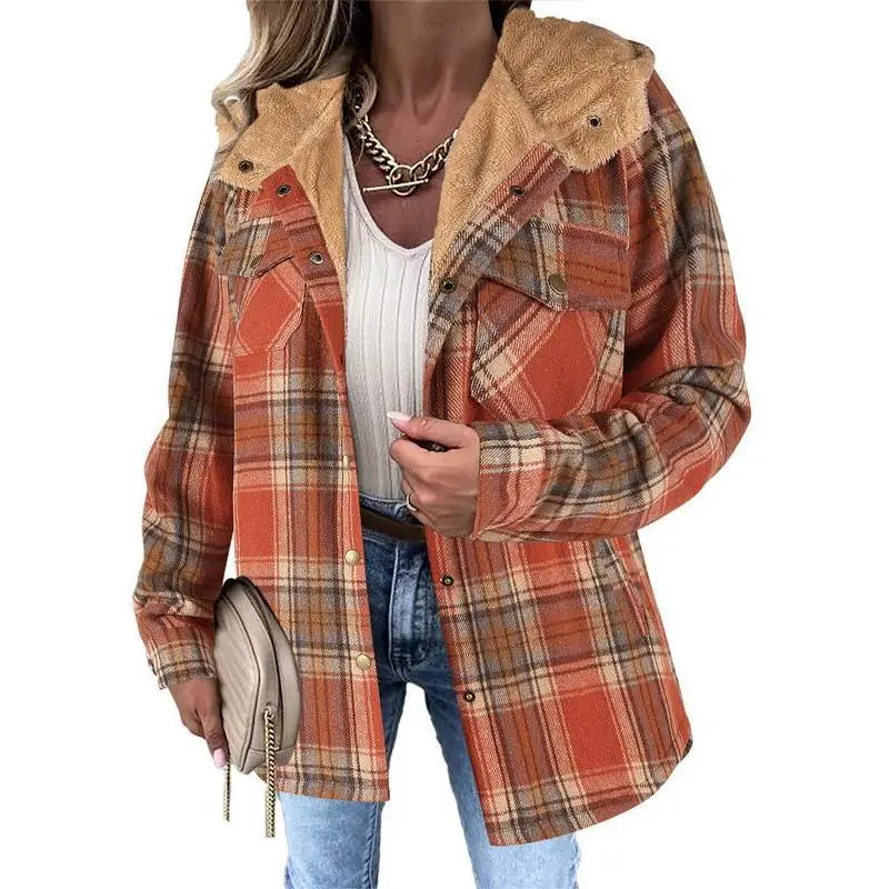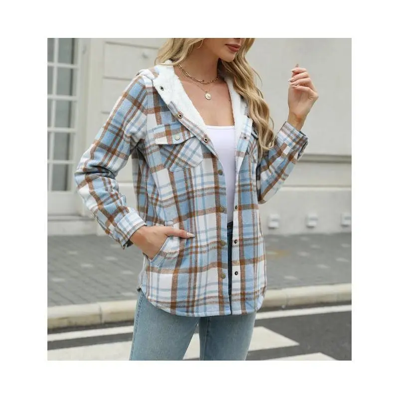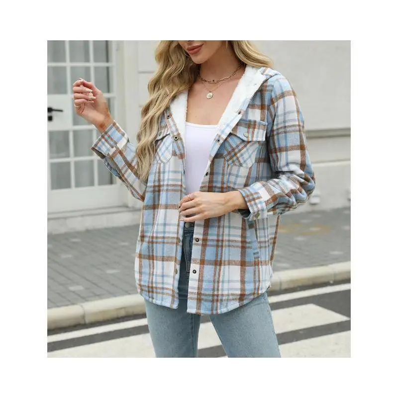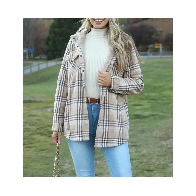 Womens Plaid Shacket Jacket Long Sleeve Button Down Fleece Hooded Jackets Warm Coat christmas cropped trench coat hoodie jumper Christmas
