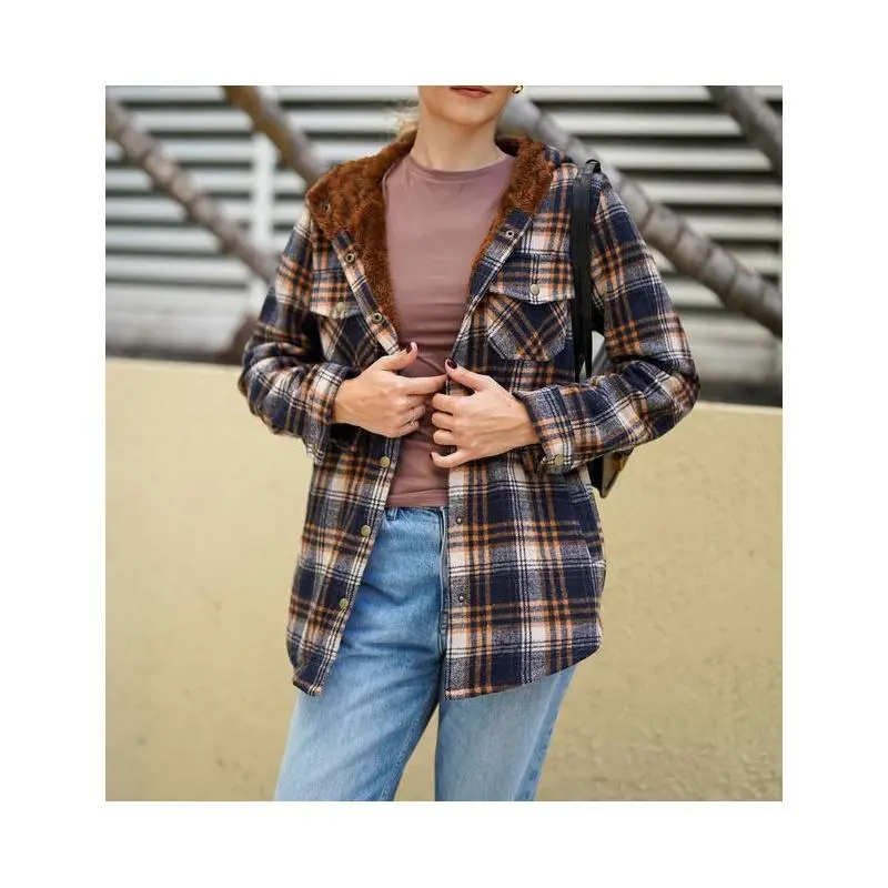 FABRIC: This Flannel Shacket Jacket is made of high quality fabric to ensure durability and comfort keeping you warm and fashionable FEATURES:Sherpa Lined, Plaid Pattern, Hooded Design, Front Button Closures, Long Sleeve with Button Cuffs, Boyfriend Style.Loose fit add a touch of effortless style to your wardrobe. MATCHING: The womens button down hooded jackets is easy to match with any pants, skirts, leggings, pencil skirt, sneakers, boots and so on OCCASIONS: Womens Plaid Jacket suitable Suitable for a casual everyday look and any occasions especially for office, parties, clubbing and dating GARMENT CARE: Machine washable