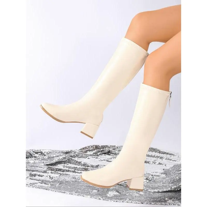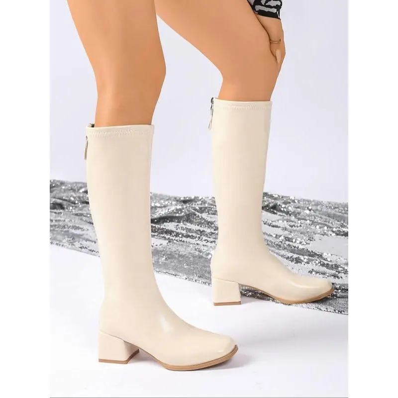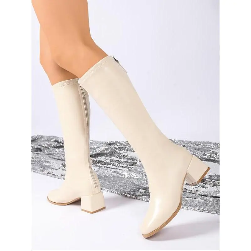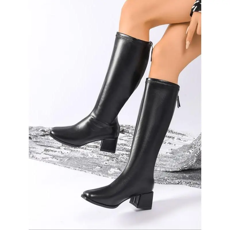Classiclongbootsforwomen,withasturdyandthickheelsole,zipperdesign,kneehighknightboots,smoothPUfabric,simpleandversatile,classicwomen'sboots