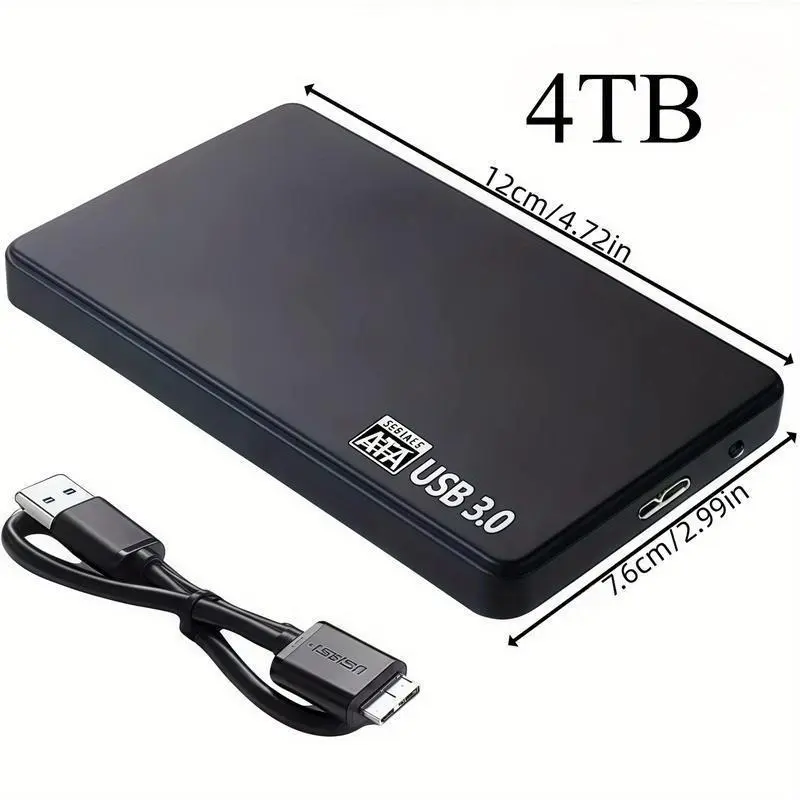 4TB Portable External Hard Drive Compact Lightweight with Large Storage Capacity Supports USB 3.0 Interface for Laptops PS4 & More Devices