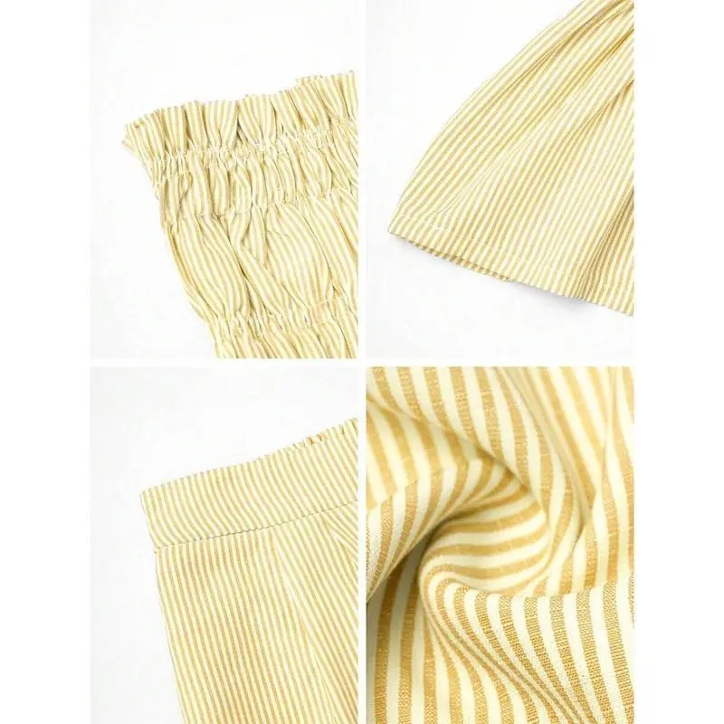 Women's Summer Butter Yellow Woven 2Pecs-One Shoulder Striped Fungus Edge Summer Minimalist Everyday Bandeau Top And Shorts Set,Suitable For Vacation,Date, Afternoon Tea, Holiday, Music Festival, Sleeve Womenswear