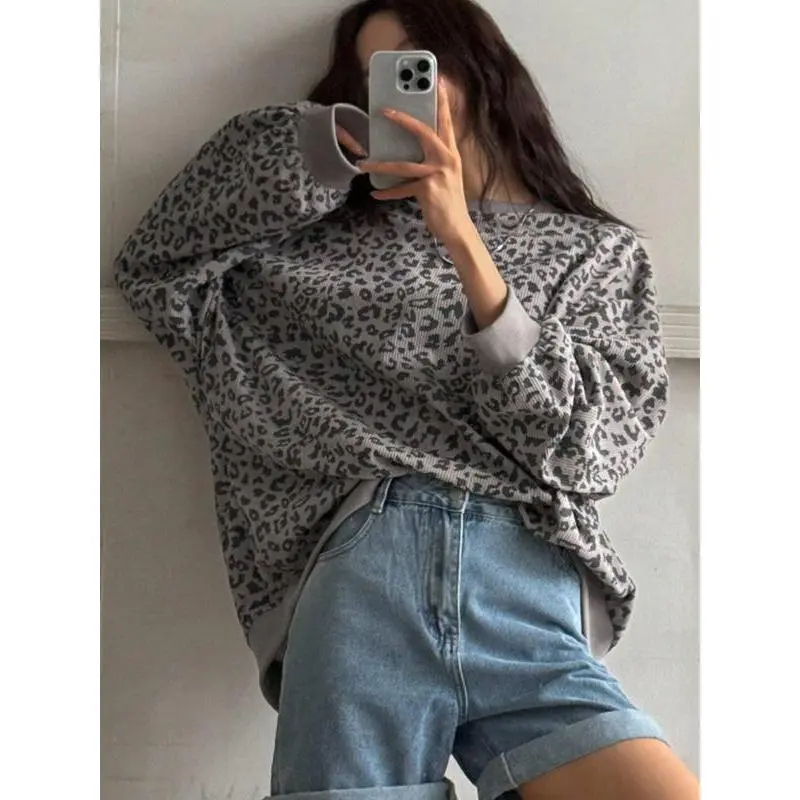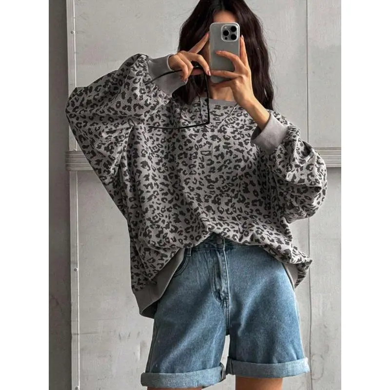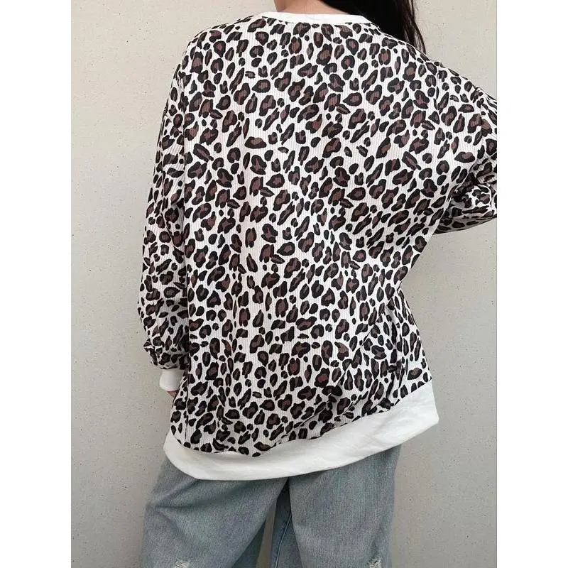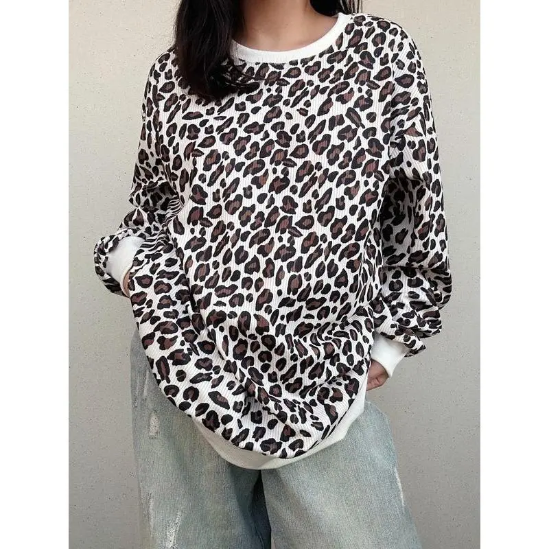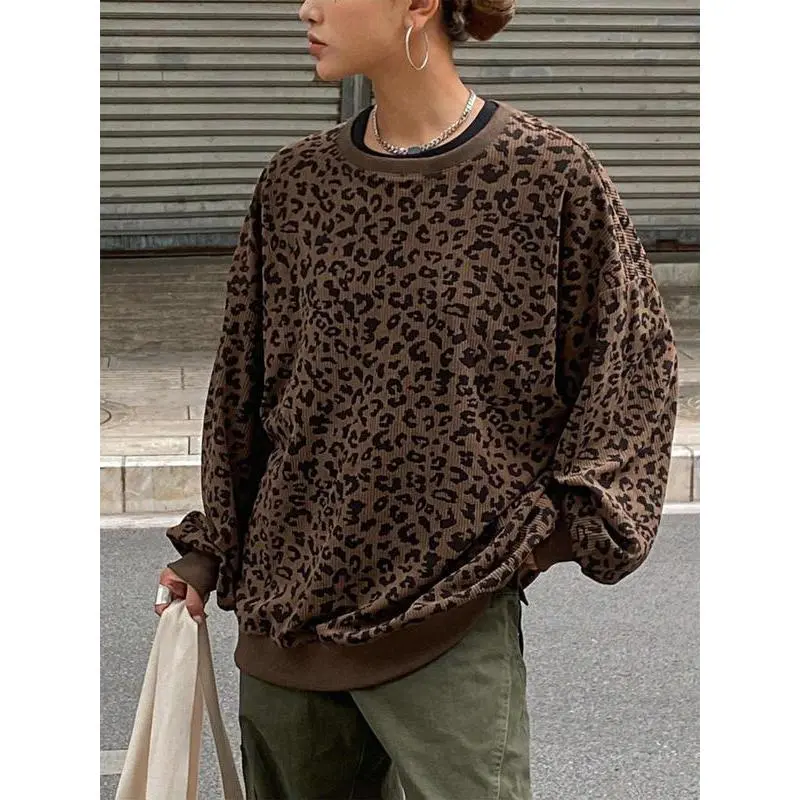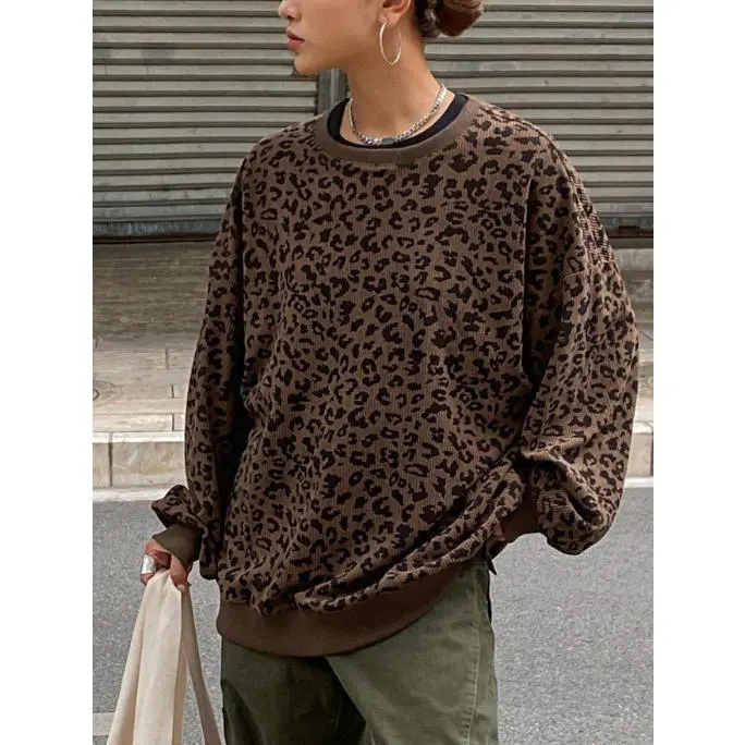 【Unique Print】: Show off your individuality with the attractive leopard print, setting you apart from typical sweatshirts. 【Soft Fabric】: Crafted from lightweight corduroy, providing a plush feel against the skin that enhances wearability. 【Relaxed Fit】: Designed with a loose-fitting silhouette, allowing for breathable movement and layering options during transitional seasons. 【Seasonal Wear】: Ideal for both spring and fall, this sweatshirt provides a comfortable layer to navigate fluctuating temperatures. 【Round Neck】: Featuring a classic round neckline, offering easy on-and-off wear while maintaining a chic appearance.