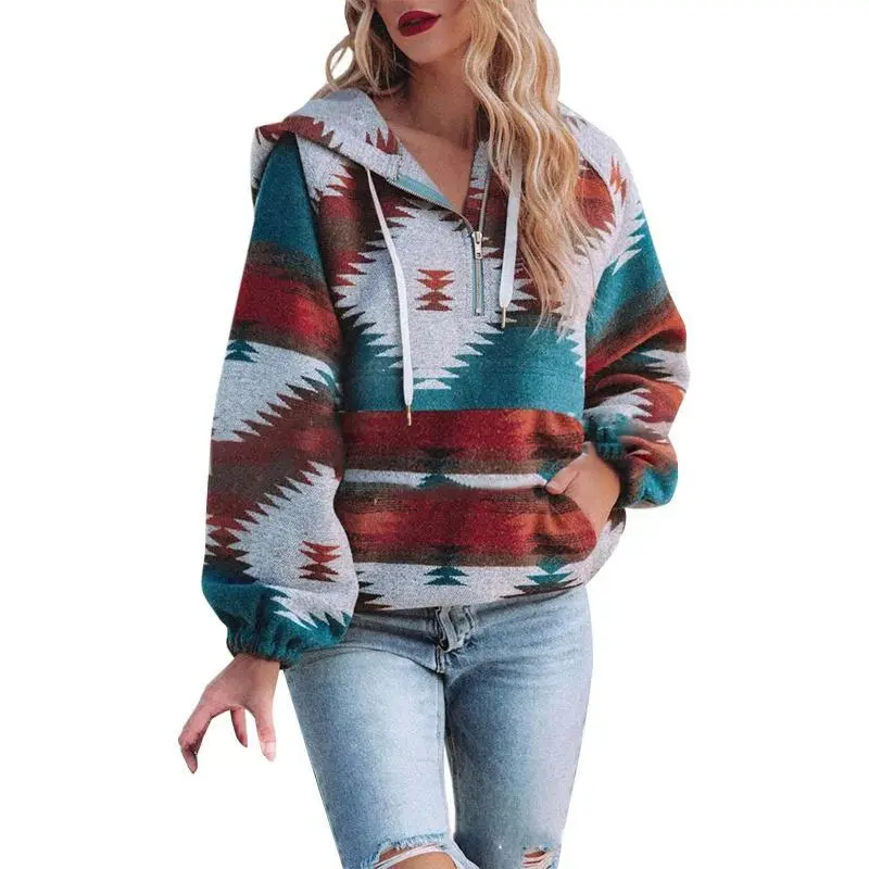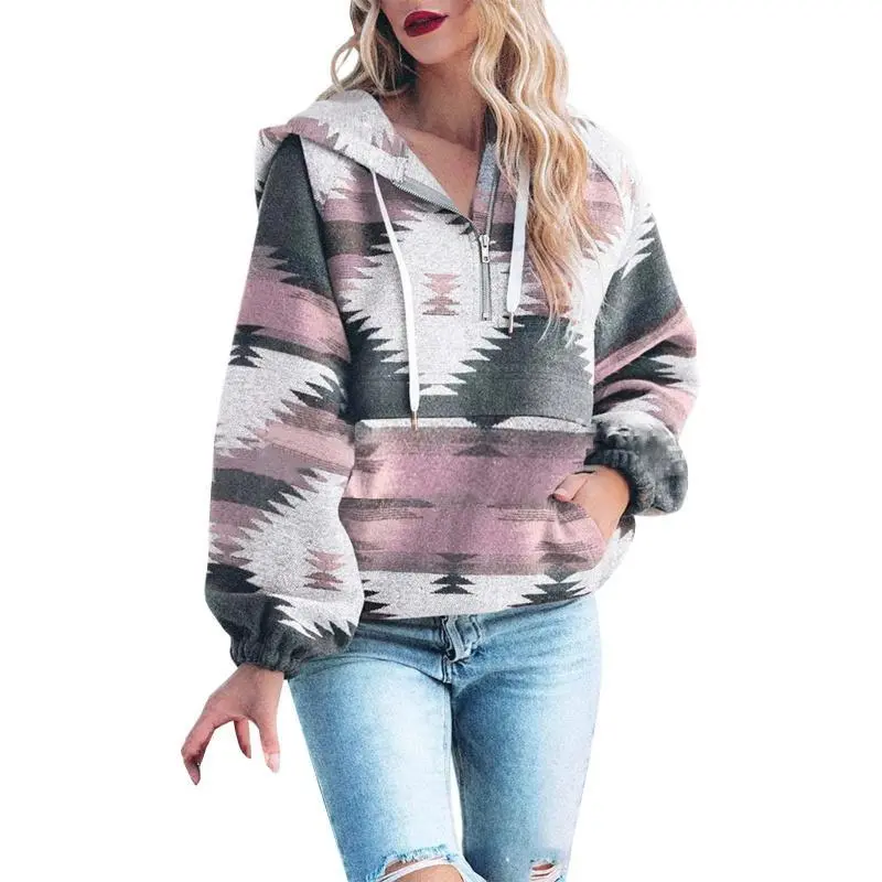 Women��s Oversized Hoodie Zip Up Long Sleeve Aztec Loose Fit Sweatshirts Pullover Tops