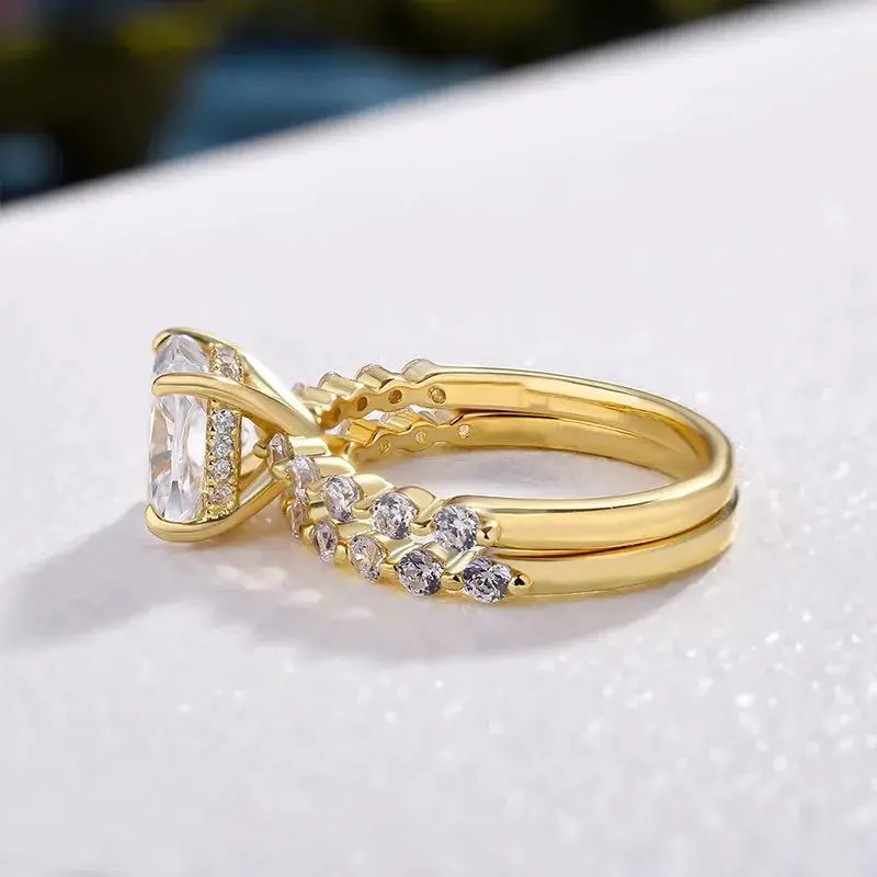 Synthetic Moissanite Brilliance:Introducing our 2.0 carats center Synthetic Moissanite, totaling 2.2 carats D Color VVS1 Clarity Synthetic Moissanite engagement ring set, a flawless gem rivaling natural stone in sparkle. Its vibrant colors and captivating allure make it a symbol of love and luxury, creating a statement piece for any occasion. Elegant Designs:Discover timeless designs,each piece reflects sophistication, fusing traditional and modern elements for a ring that exudes timeless elegance. Sterling Silver Craftsmanship:Meticulously crafted in sterling silver , our rings marry charm with durability. The silver material ensures a timeless appeal, symbolizing quality and sophistication in every piece. Preferred Gift with Elegant Packaging:Gift perfection with our rings, presented in a delicate box. Ideal for birthdays, anniversaries, or special occasions, the thoughtful packaging enhances the gifting experience, making the ring a cherished and memorable present. Quality Assurance & Service: Committed to precision and attentive service, our brand ensures satisfaction and is ready to assist whenever needed.