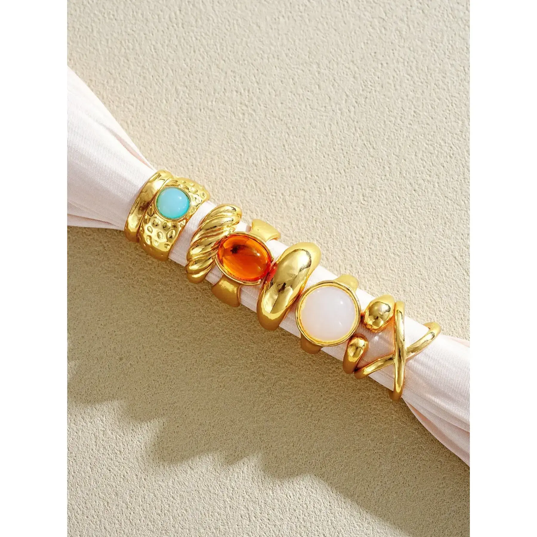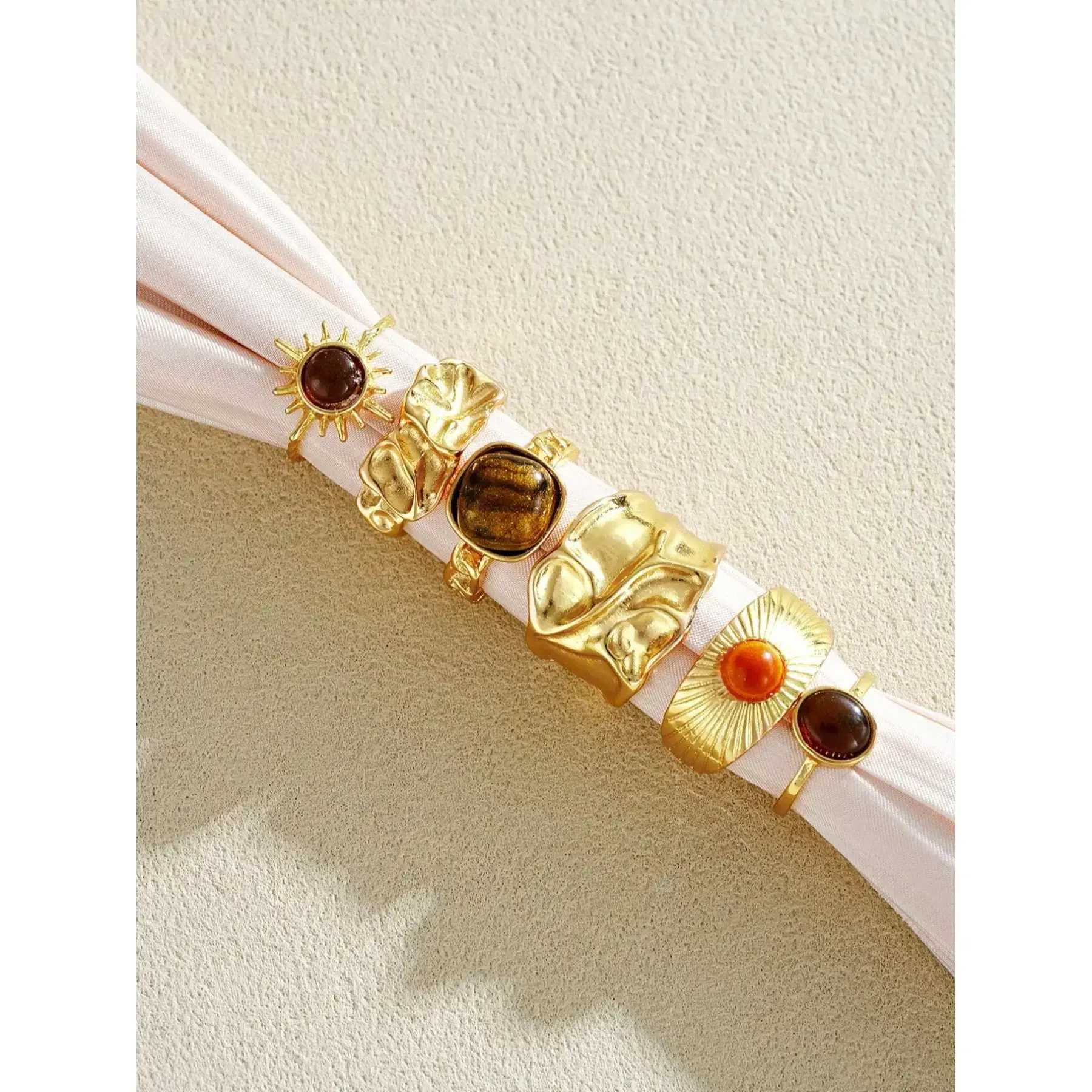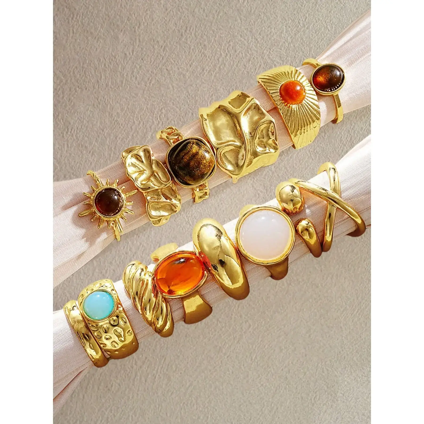 14pcs Vintage Bohemian Punk Chunky Asymmetrical Geometric Design Sunflower Colorful Crystal For Women, Suitable For Holiday, Date, Party, Daily Wear, Photo Shoot, Versatile, Bohemian Stackable Rings (No Box)