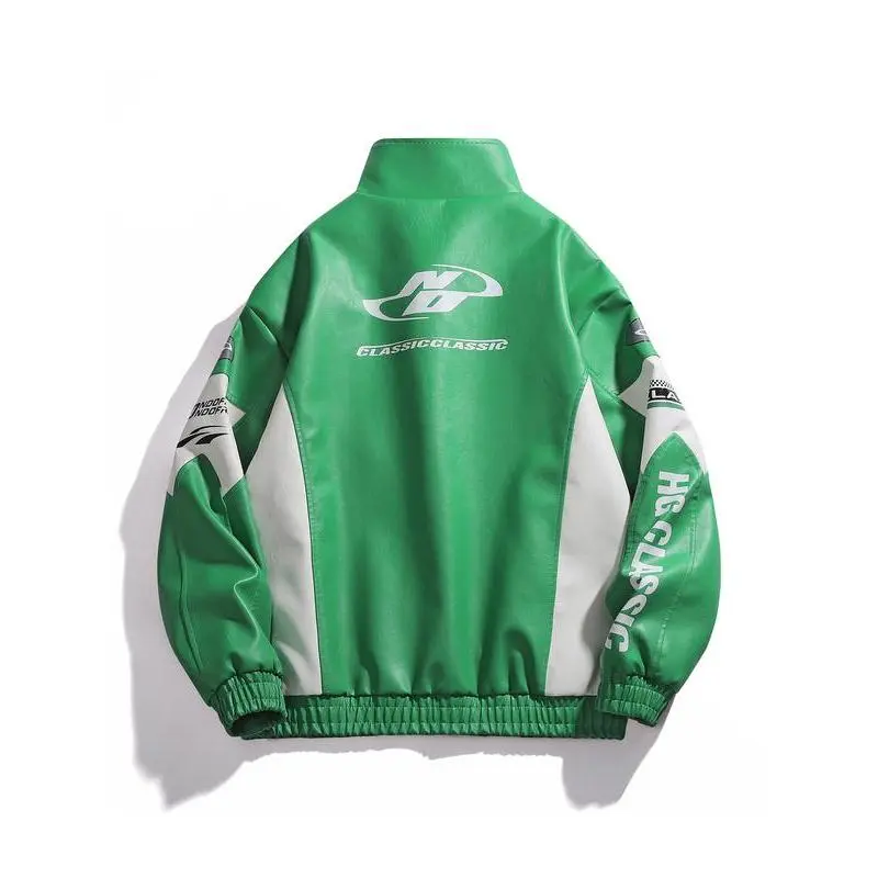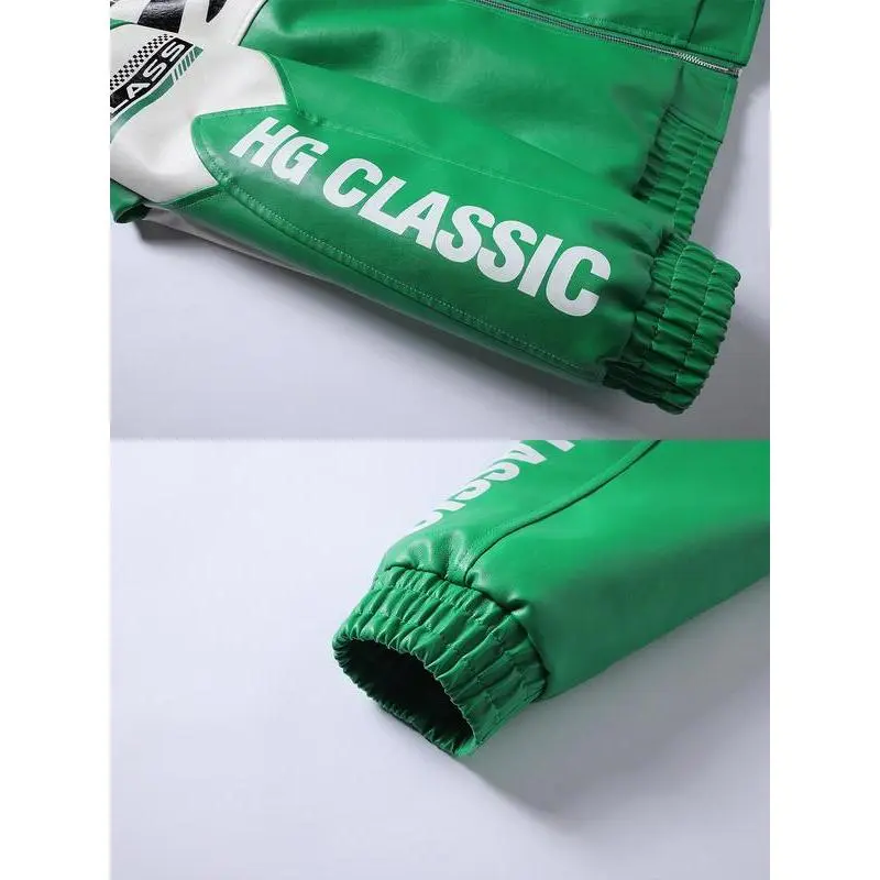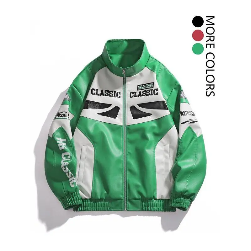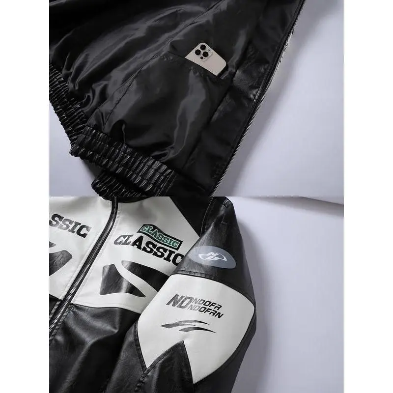��Reflective Finish��: The PU leather offers a glossy appearance, enhancing visual appeal and distinctiveness in various environments. ��Weather Resistance��: Boasts windproof and wear-resistant qualities, making it suitable for various outdoor activities and conditions. ��Loose Fit��: Features a loose-fitting silhouette, allowing for freedom of movement and a relaxed wear experience. ��Woven Fabric��: Crafted from woven fabric, it combines durability and comfort, designed for fall and winter seasons. ��Unique Patterns��: Showcases letter and patchwork patterns, providing a trendy look that distinguishes it from similar products.