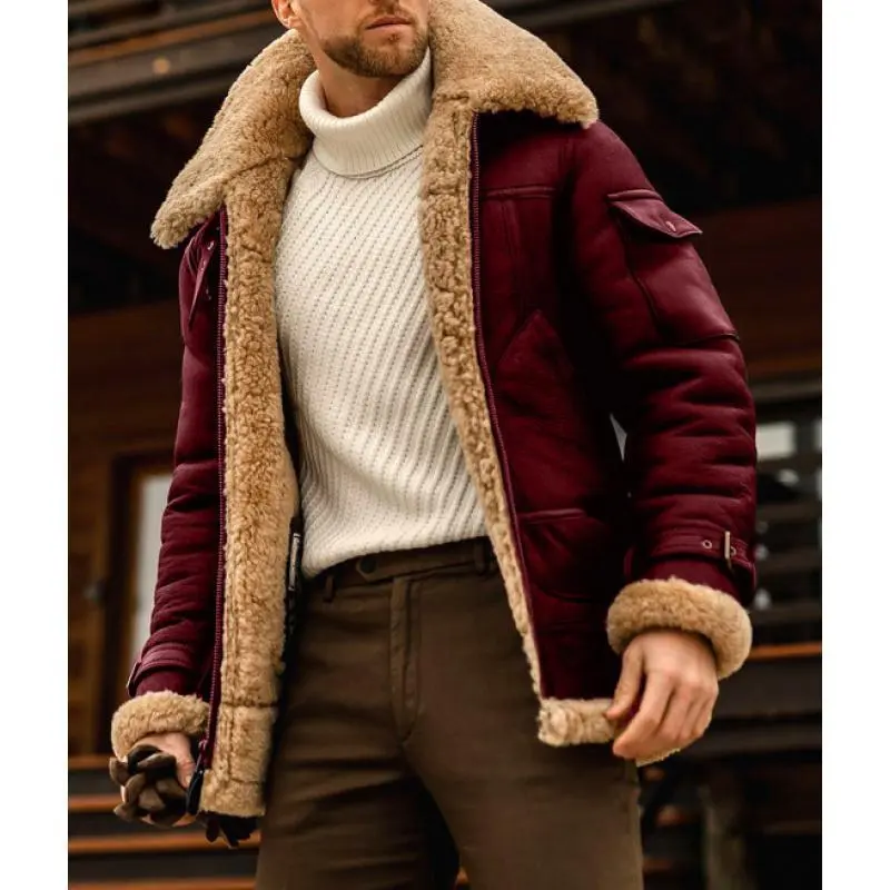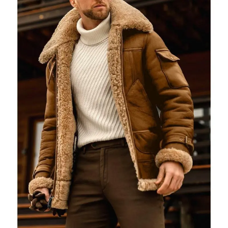 Men'sWinterCoatLargeSizeWarmCompositeLeatherJacketThickenedLeatherandFurIntegratedOvercoatforMen
