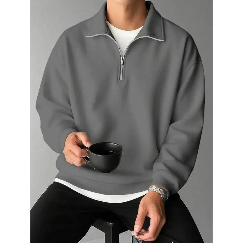 【Half-Zip Feature】: The half-zip closure offers adjustable ventilation and a contemporary look, enhancing the garment's functionality. 【Fitted Cut】: This fitted attribute ensures a streamlined silhouette that flatters the body, making it suitable for daily wear. 【Moderate Thickness】: Crafted with a moderate fabric thickness, this sweatshirt provides adequate warmth for autumn and winter seasons. 【Plain Pattern】: The solid plain pattern allows for easy pairing with various outfits, making it an everyday essential piece. 【Knit Fabric】: Made from quality knit fabric, it offers a soft texture, contributing to a pleasant wearing experience throughout the day.