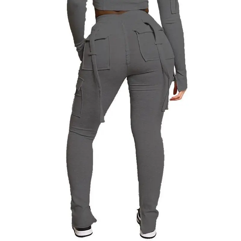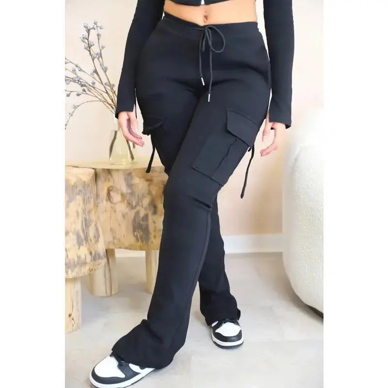 Cargo Pant Women Long Pants Sexy Slim Fit Casual Drawstring Splice Button Pocket Straight Trousers Lace Up High Elastic Waist