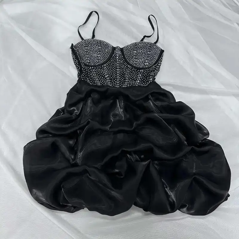 Womens Mesh Rhinestones Spaghetti Strap Bodycon Mini Cake Dress Sleeveless Night Party Birthday Ball Gown Dresses Womenswear Formal
