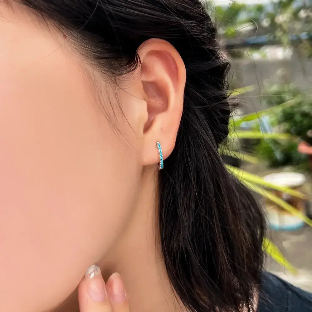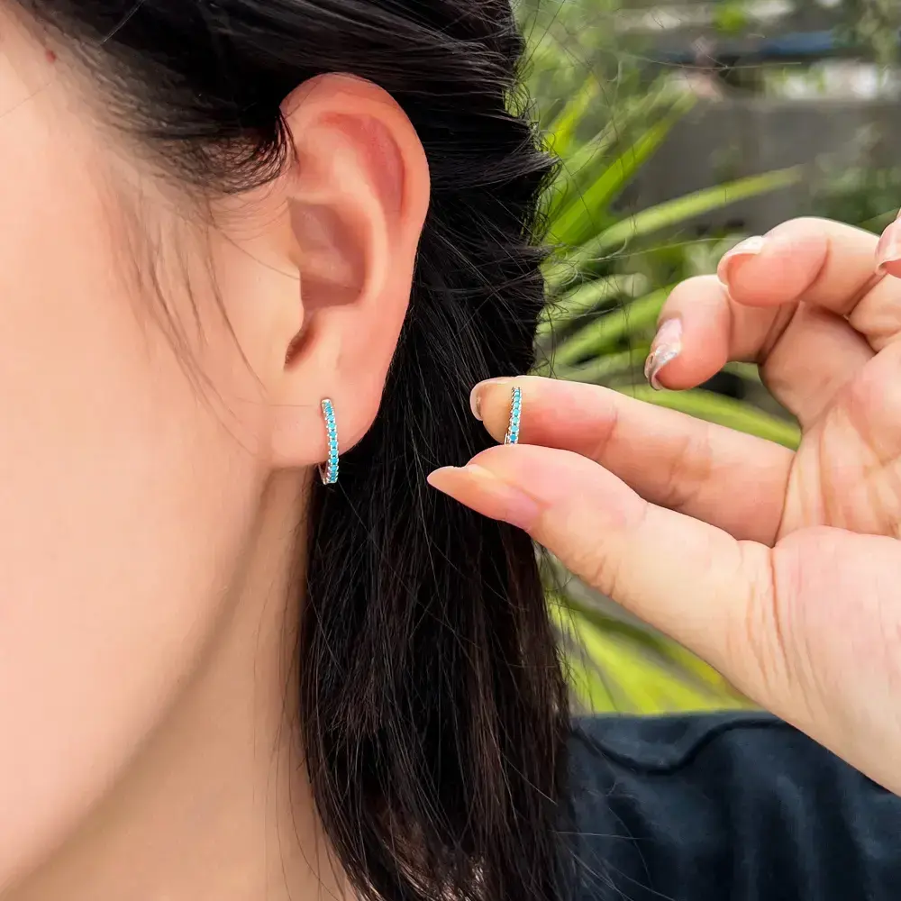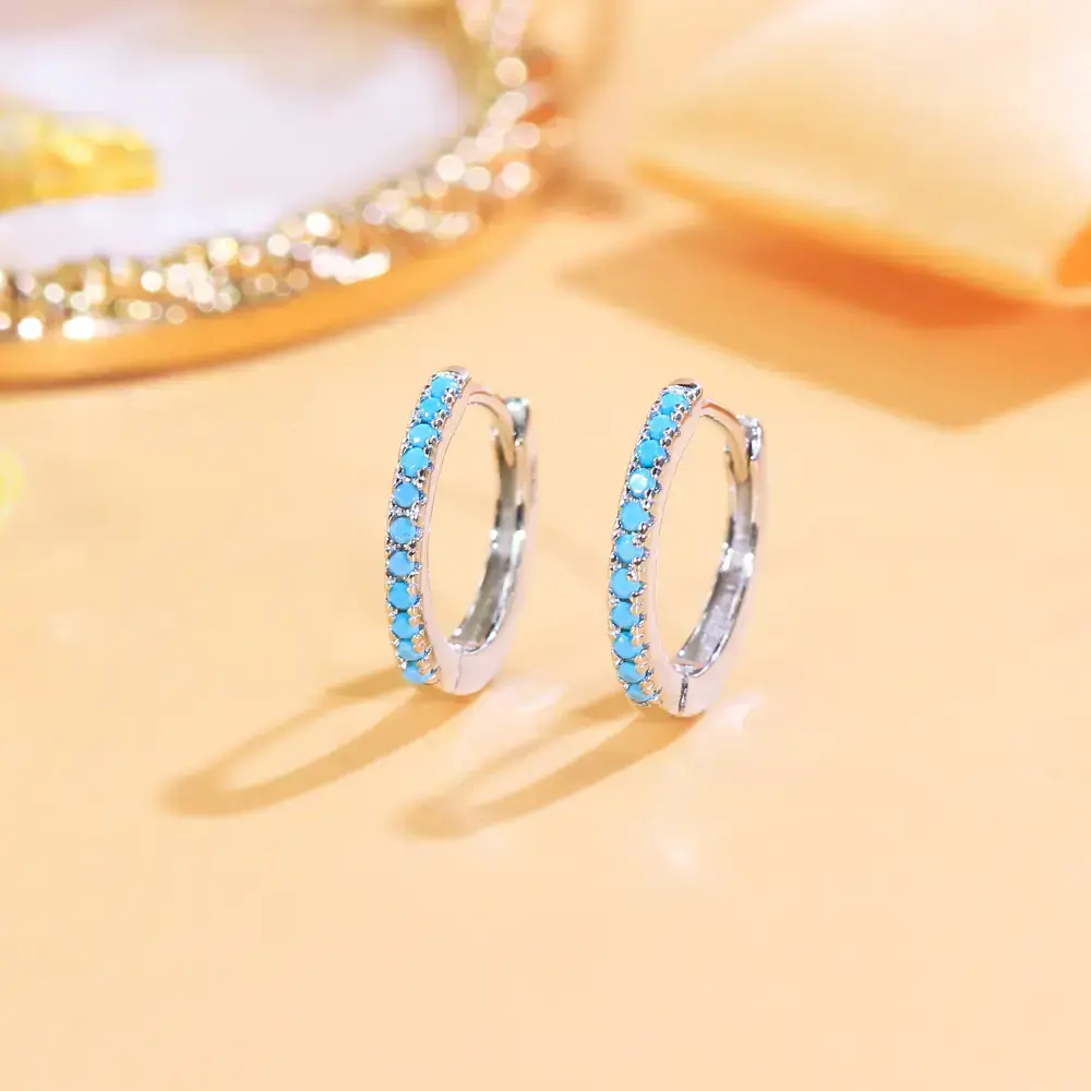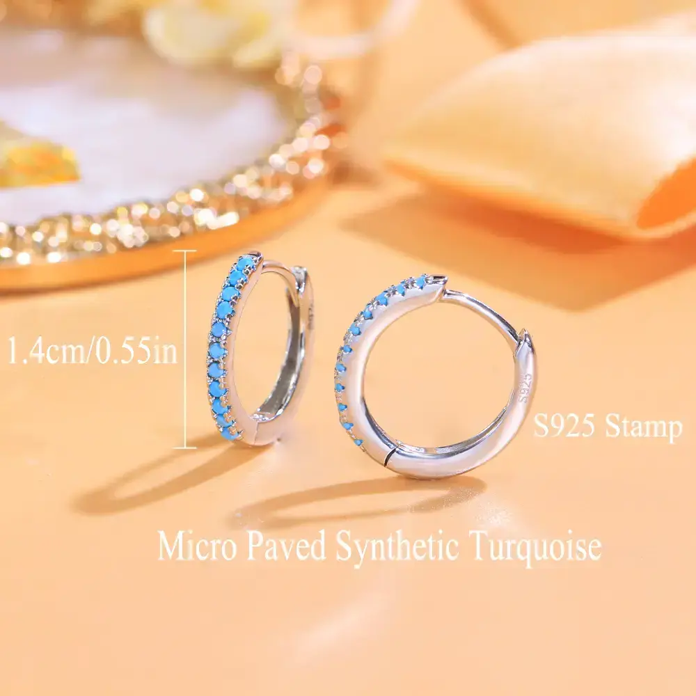 925 Sterling Silver Hoop Earrings, Elegant & Fashionable Style, Sparkling Blue Synthetic Turquoise, Round Dangle Design, Perfect for Valentine'S Day & Mother'S Day, Luxurious Gift for Women, All Seasons JewelryElegant Dangle Earrings