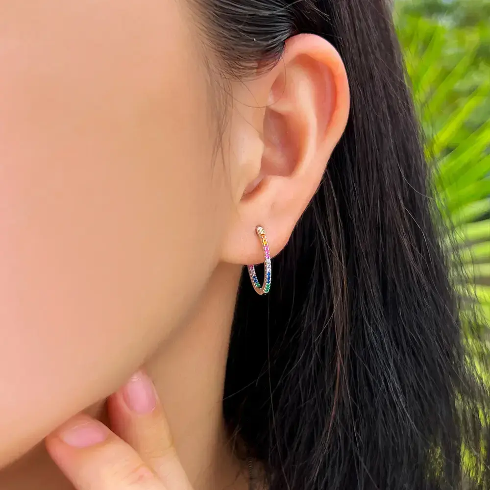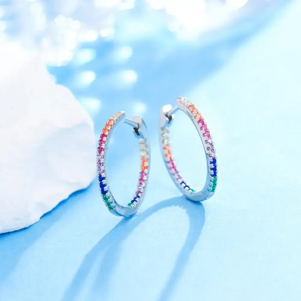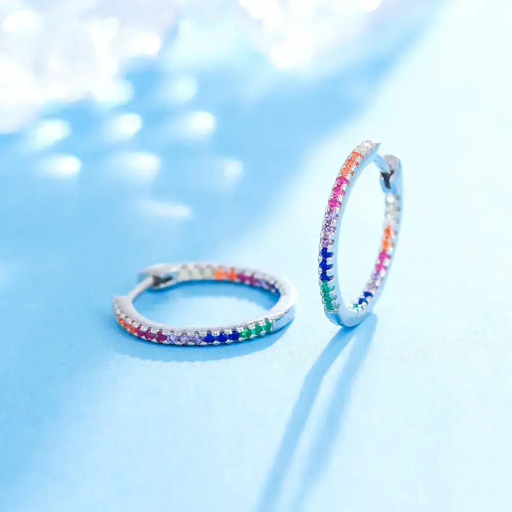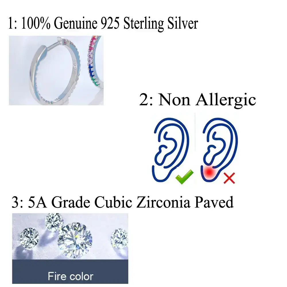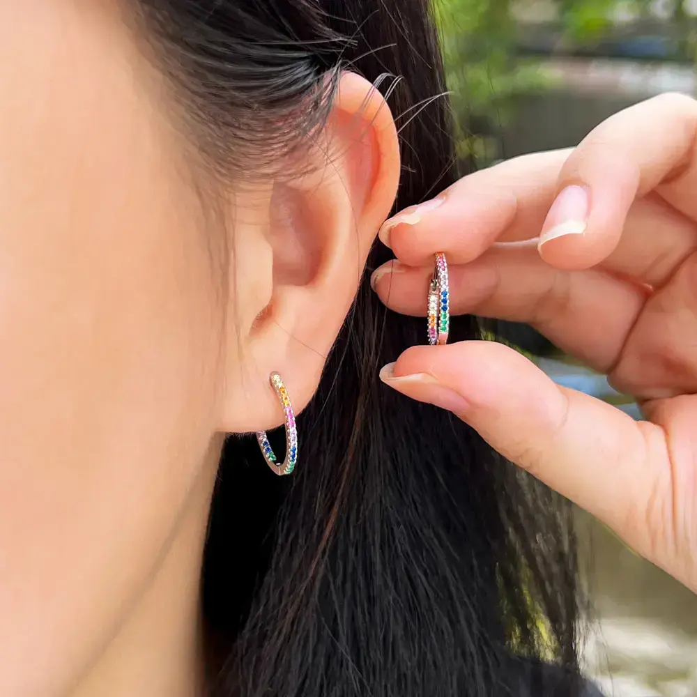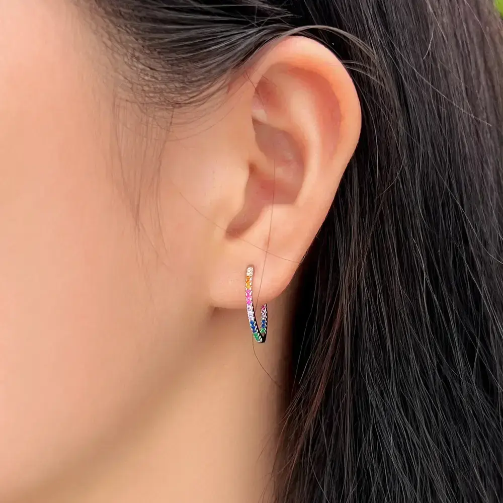 🌟 Premium Material 🌟 These hoop earrings are crafted from S925 sterling silver with real 5A cubic zirconia pave. The cubic zirconia features a diamond-like perfect cut, ensuring the earrings sparkle and catch the eye. The material combination offers both elegance and durability, making these earrings a standout accessory. 📏 Perfect Size 📏 Each earring measures 1.7cm, a size that is neither too large nor too small. This size ensures comfort for all-day wear. The perfect dimensions make these earrings suitable for daily activities, adding a subtle yet noticeable touch to any outfit. 🌈 Versatile Design 🌈 Featuring a colorful rainbow style, these earrings are ideal for women. They can be worn for daily activities, adding a vibrant touch, or for parties, where they will make you stand out with their unique and shimmering look. Perfect for any occasion, these earrings are a versatile addition to your jewelry collection.