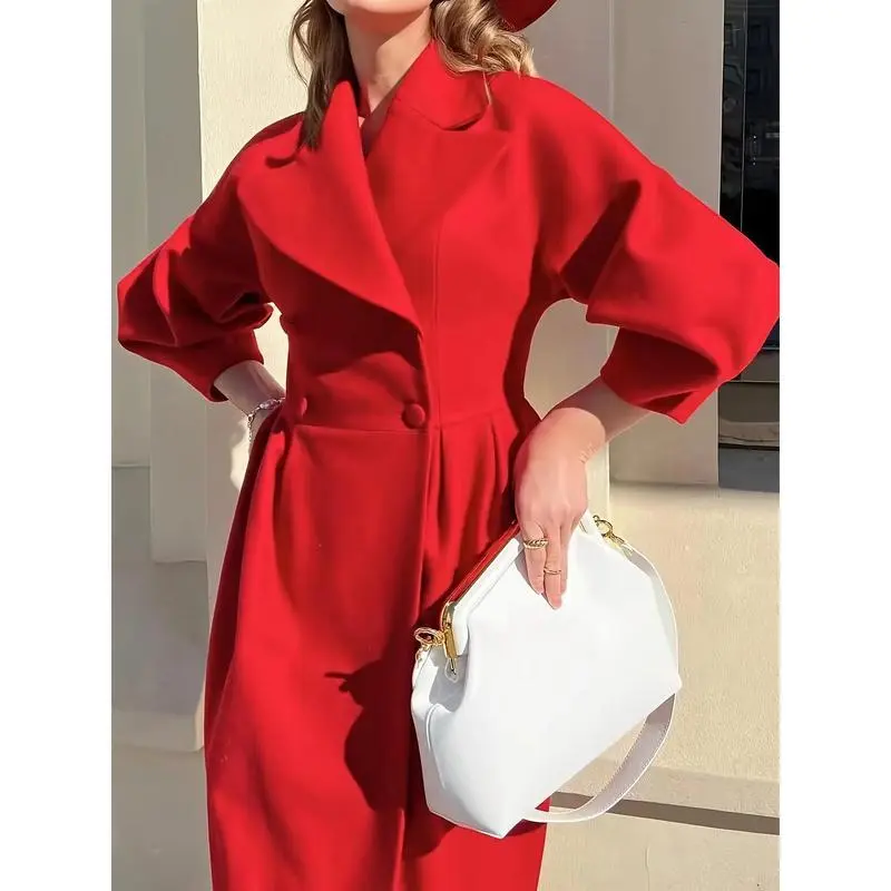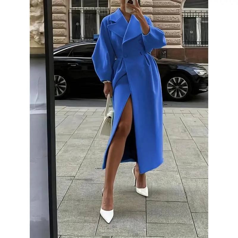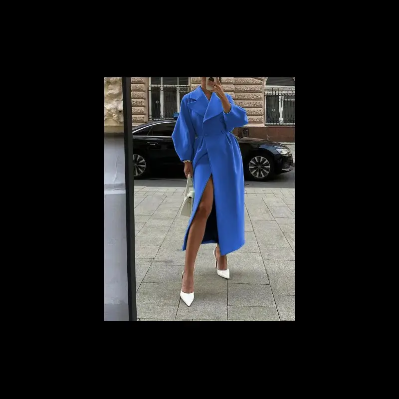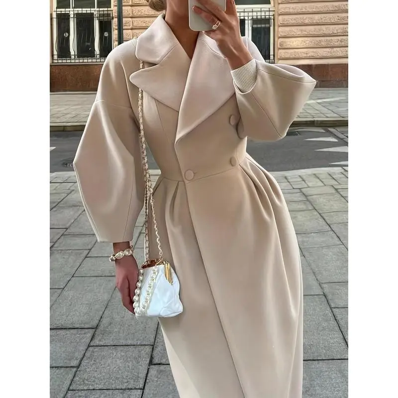 Fashion Women's Classic Winter Beige Long Trench Coat, Oversized Lapel, Autumn Jacket, Casual Winter Wear, Fashion Jacket, Style, High-Quality Coat, Fleece Fabric, Women's Coat, Double-Breasted Coat, Fashion Enthusiast, Casual Outfit Womenswear Tops