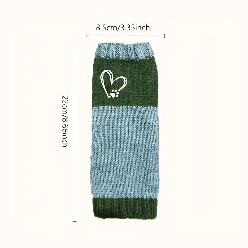 Vintage Style Women'S Knit Mittens with Heart & Paw Print Embroidery, Polyester 100% Warm Windproof Winter Gloves, Casual Weekend Hand Warmers, Hand Washable - Christmas Gift Idea
