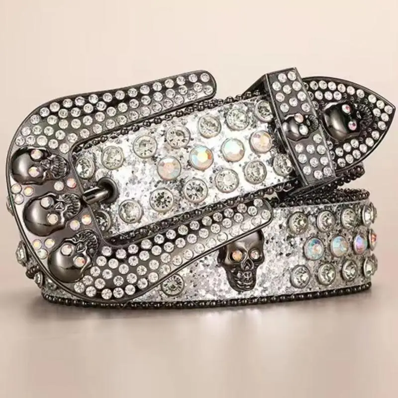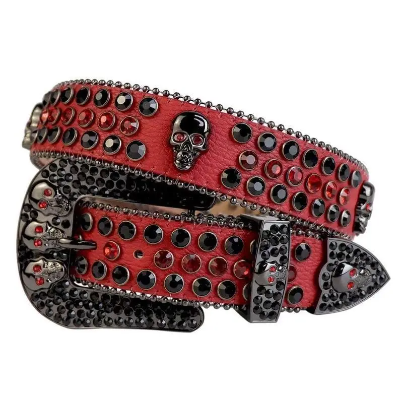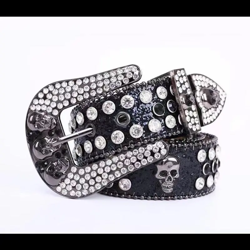 Durable and high-quality material: This rhinestone belt is made of high-quality PU leather, which is thick and durable. The whole belt is hand-inlaid with rhinestones, not easy to fall off, and the buckle, belt tail and small beads are made of metal, which is durable. Metal Skull Design: This is a gorgeous punk belt decorated with shiny rhinestones and exquisite metal skulls. The belt is decorated with round beads on both sides, matched with large rhinestone buckles and belt tails with vintage skull designs, making the whole belt look more fashionable and exquisite. Suitable for multiple occasions: Our rhinestone belts for men and women are fashionable and shiny, and can be matched with multiple outfits in any season. It is a great accessory for your daily wear or jeans, denim/girl clothes, pants, loose shirts, jackets, sweater dresses, coats, etc. You can wear this shiny belt to music festivals, punk bands, equestrian shows, or to parties or shopping. Multiple size and color options: Belt width: 1.5 inches. There are 7 holes in total to help adjust the right size. Exquisite Gift Packaging: Our sparkling rhinestone belt comes with an exquisite packaging box, which is a great gift for your lover, friends and yourself on Birthday, Halloween, Thanksgiving, Christmas, New Year, Anniversary, Graduation and Valentine's Day.