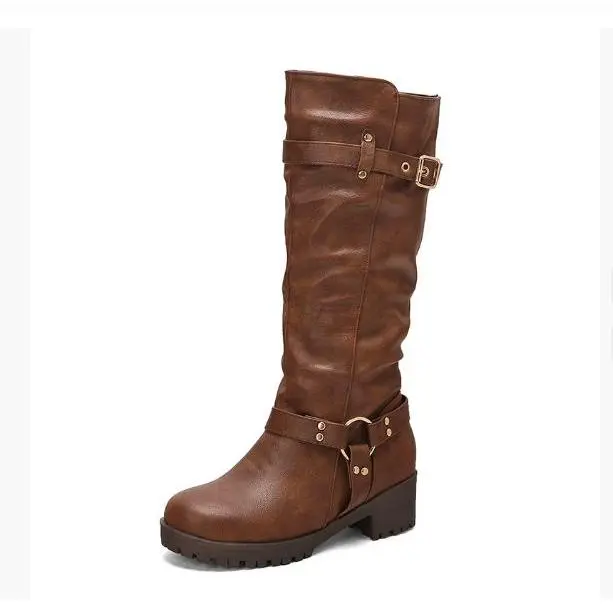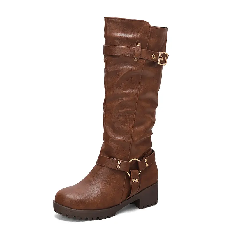 【New Colors】Knee High Boots for Women, Square Toe Chunky Block Heeled Platform Tall Leather Wide Calf Cogo Boots with Side Zipper Footwear Gir Walking Shoes Girl Comfort Fallfashion Brown Flatform