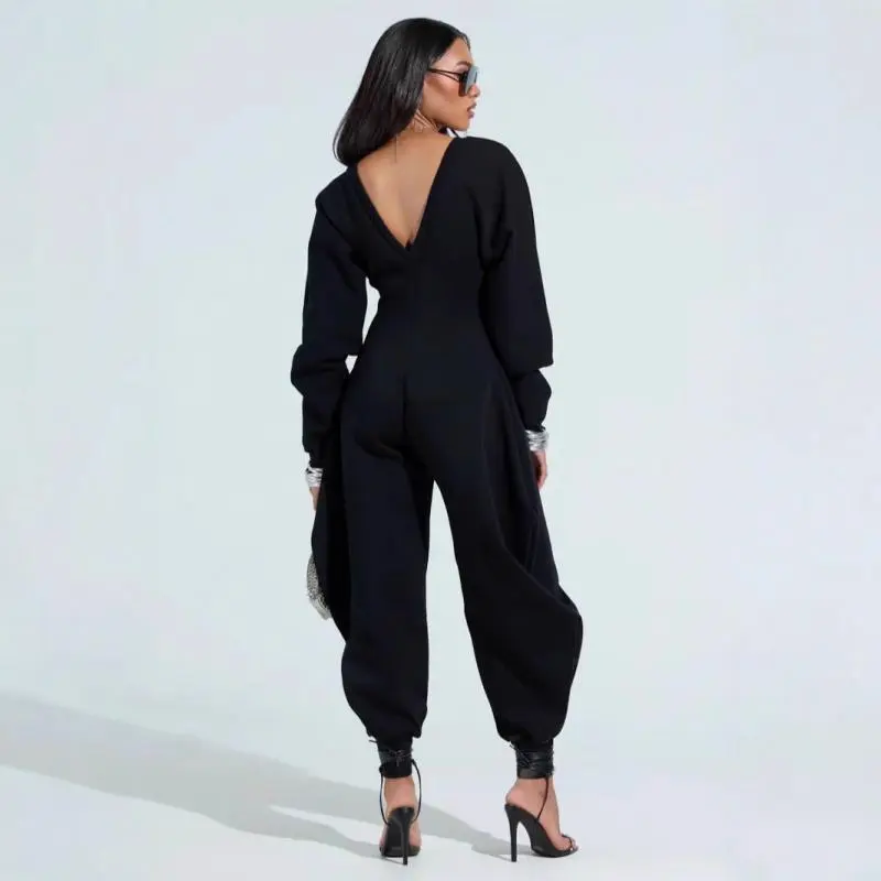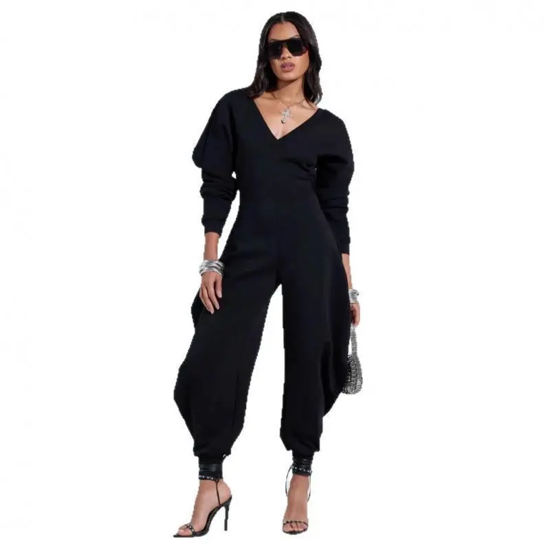 Women's Jumpsuit Flared Pants Tight V-neck Sexy Long Sleeve Jumpsuit Womenswear Overalls