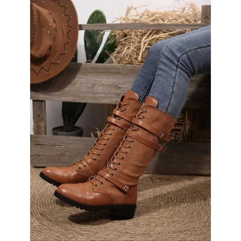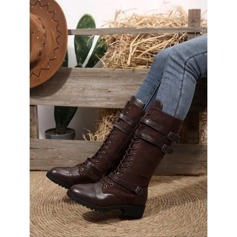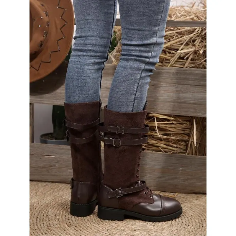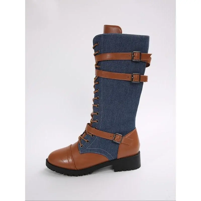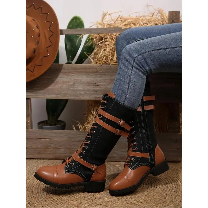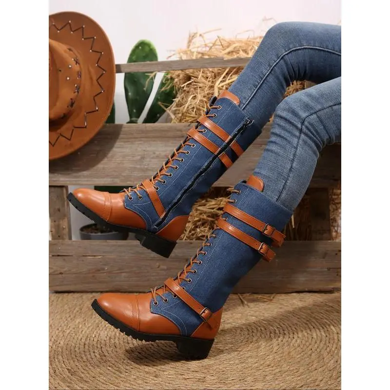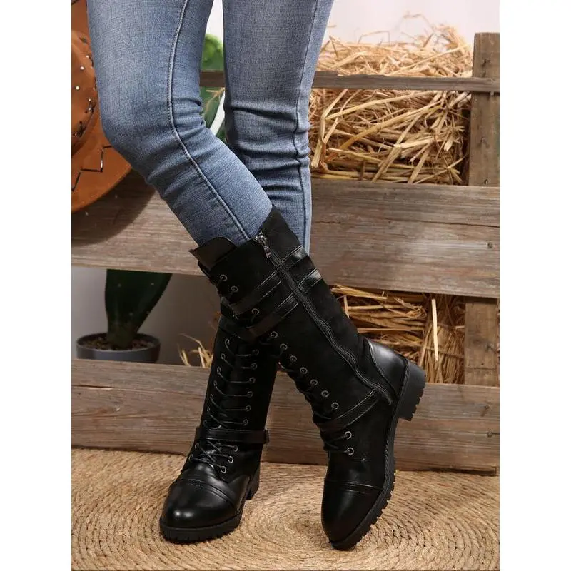 【Knee-height Boots】: These knee-high boots provide exceptional coverage and support, making them suitable for various outfits. 【Durable Materials】: Crafted with PU leather and rubber, these boots offer longevity while maintaining a chic appearance. 【Thick Sole】: The thick sole provides added stability and comfort during wear, ideal for long hours on your feet. 【Unique Patchwork】: Featuring a distinctive patchwork pattern, these boots stand out from typical designs in the market. 【Secure Zipper Closure】: Equipped with a convenient back zipper, these boots ensure easy wear and a snug fit.