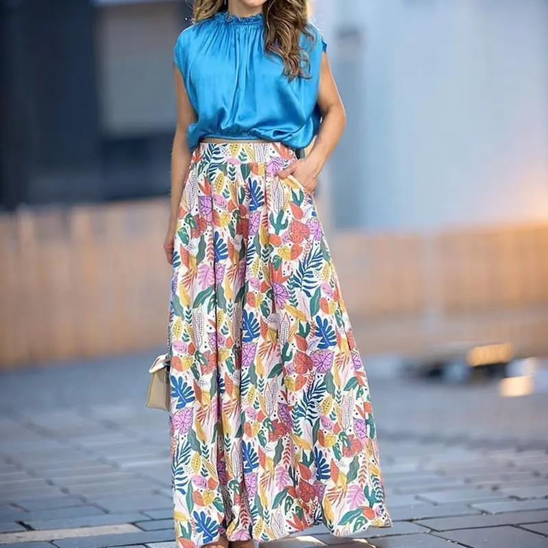 2025 European and American Women's Clothing Autumn Printed Shirt Elegant Wide-Leg Pants Fashion Casual Set Dress Fit Floral Loose Sleeve Womenswear