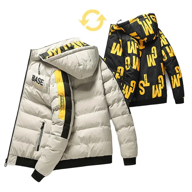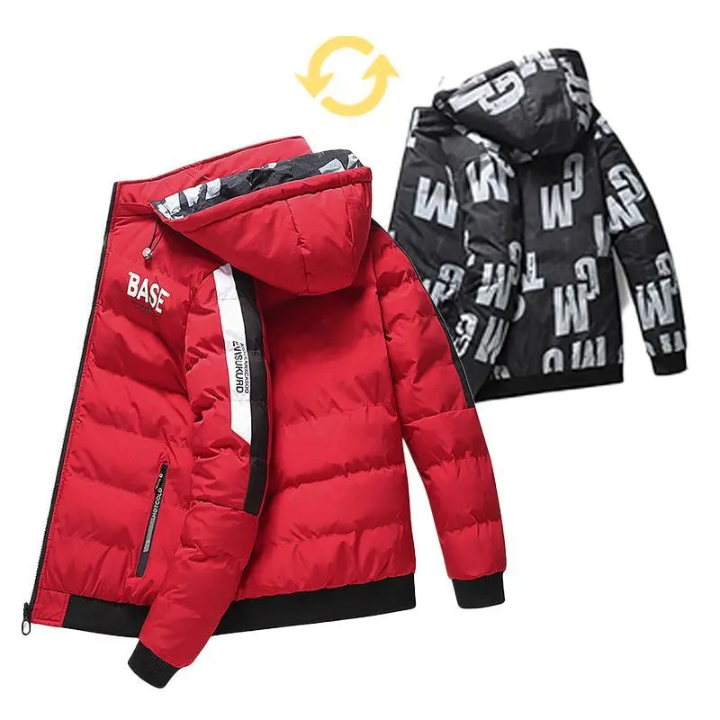 Unisex Double-Sided Wear Trendy Hooded Cotton Jacket, Sporty Style with Adjustable Hood, Durable and Windproof, Fine Stitching, Suitable for Men and Women, Perfect for Winter Outings and Everyday Walks