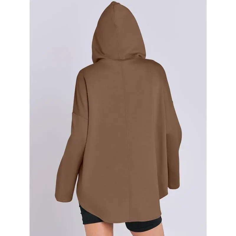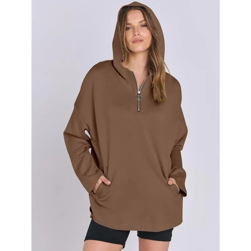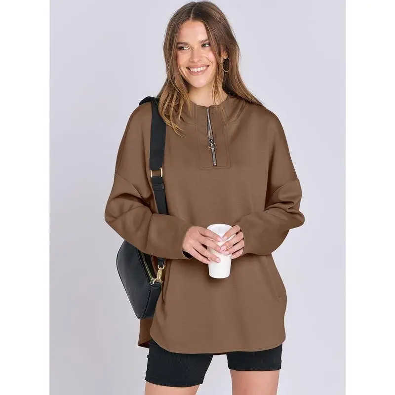 Women's Oversized Hoodie with Quarter Zip, Waist-Tie Pullover, Fashionable College Style Clothing for Girls