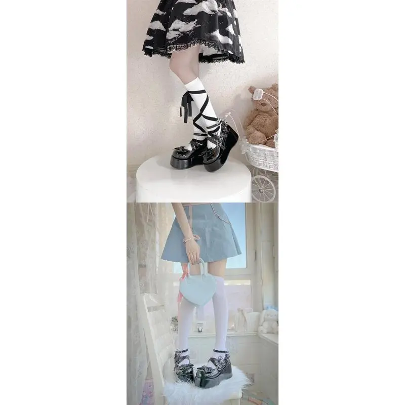 KawaiiLaceBowknotWhiteLolitaShoesWomen2025HeartBucklePlatformMaryJanesWomanJapaneseStylePatentLeatherJkShoes