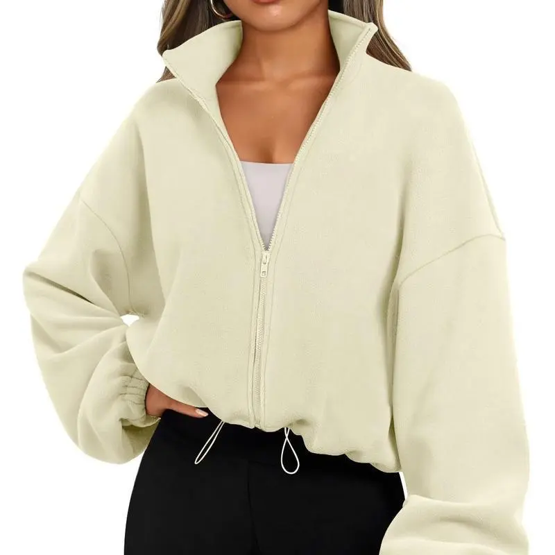 Women's Zip-Up Drawstring Long Sleeve Casual Hooded Sweatshirt Jacket,Airport Women Outfits,Three Quarter Sleeve Tops Fabric Womenswear Zipper Polyester